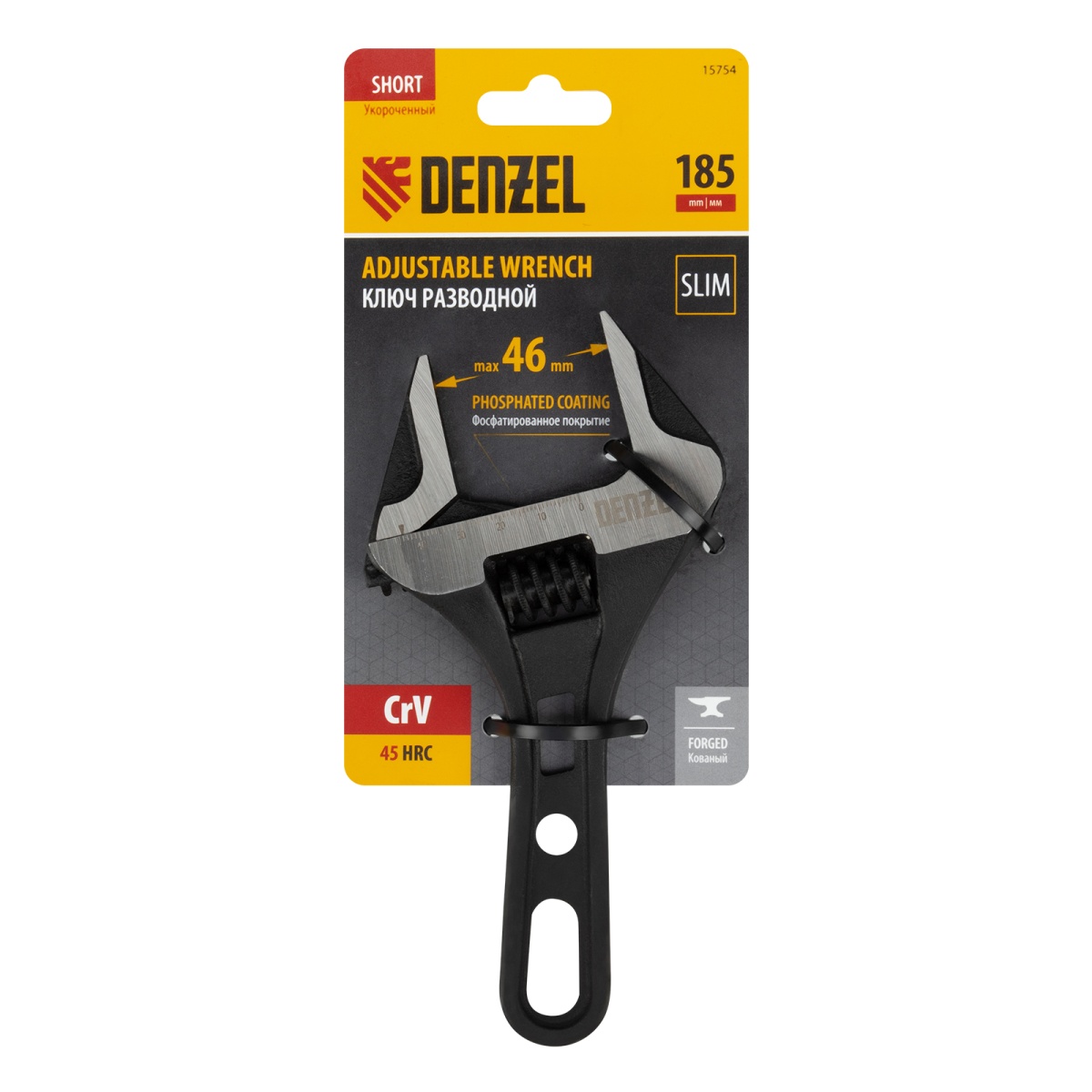 Купить Ключ разводной 185 мм, CrV, кованый, укороченная рукоятка Denzel V2500 по лучшей цене с доставкой - интернет магазин №1 в России