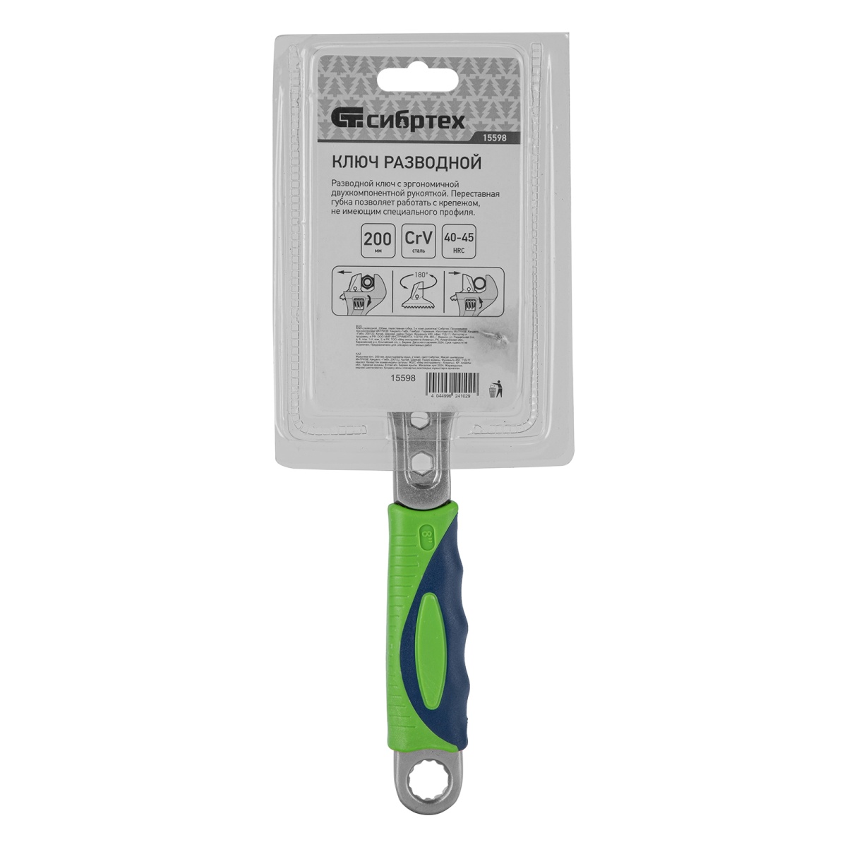 Купить Ключ разводной, 200мм, переставная губка, 2-х комп.рукоятка Сибртех V2525 по лучшей цене с доставкой - интернет магазин №1 в России