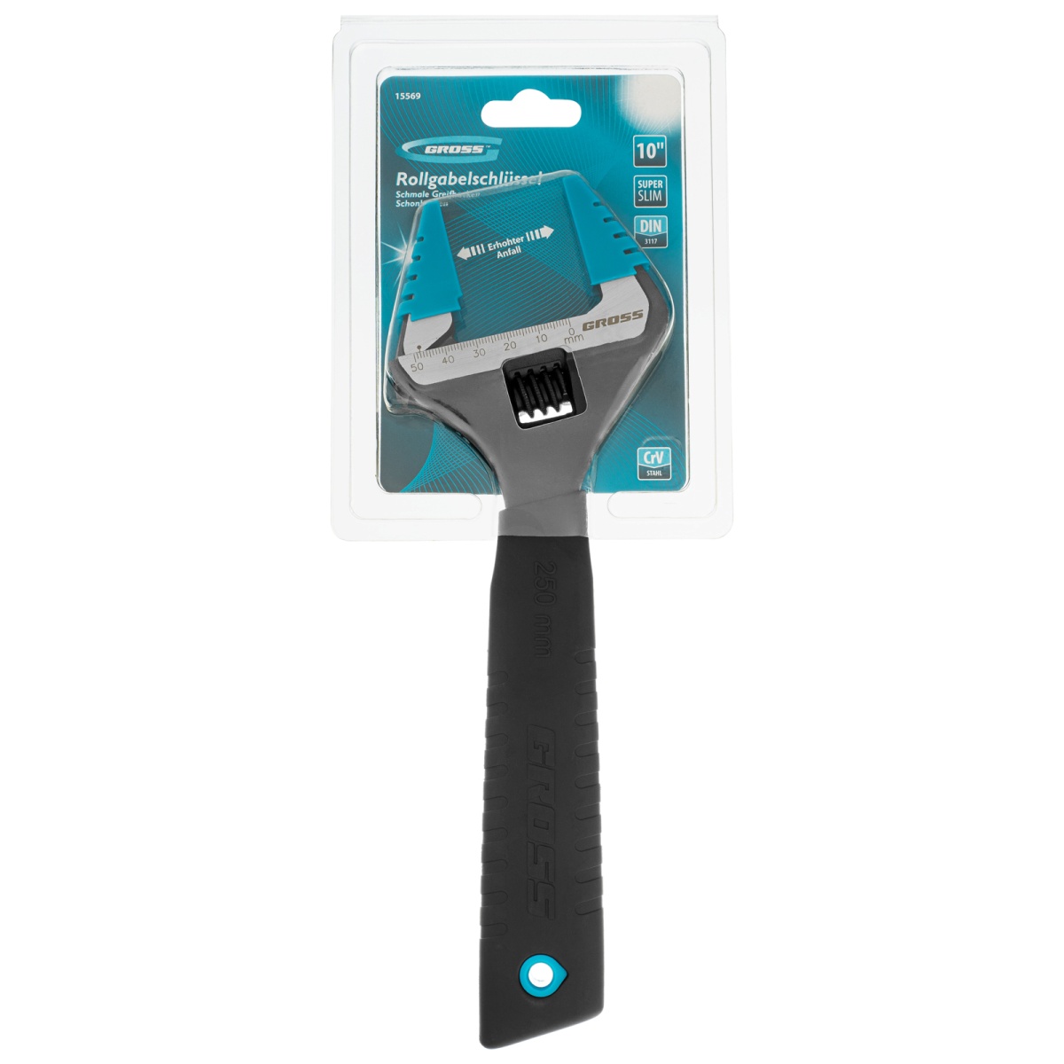 Ключ разводной, 250 мм, CrV, тонкие губки, защитные насадки Gross