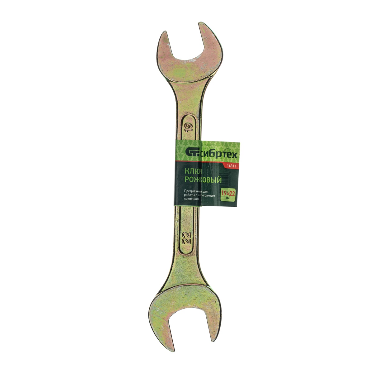 Ключ рожковый, 19 х 22 мм, желтый цинк Сибртех