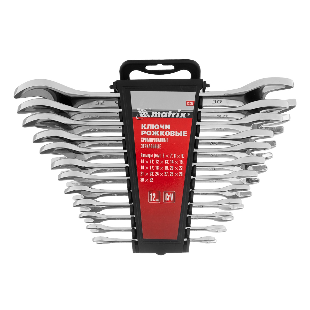 Купить Набор ключей рожковых 12 шт, (6-32мм) CrV, EllipticaL зеркальное хромирование Matrix V4388 по лучшей цене с доставкой - интернет магазин №1 в России