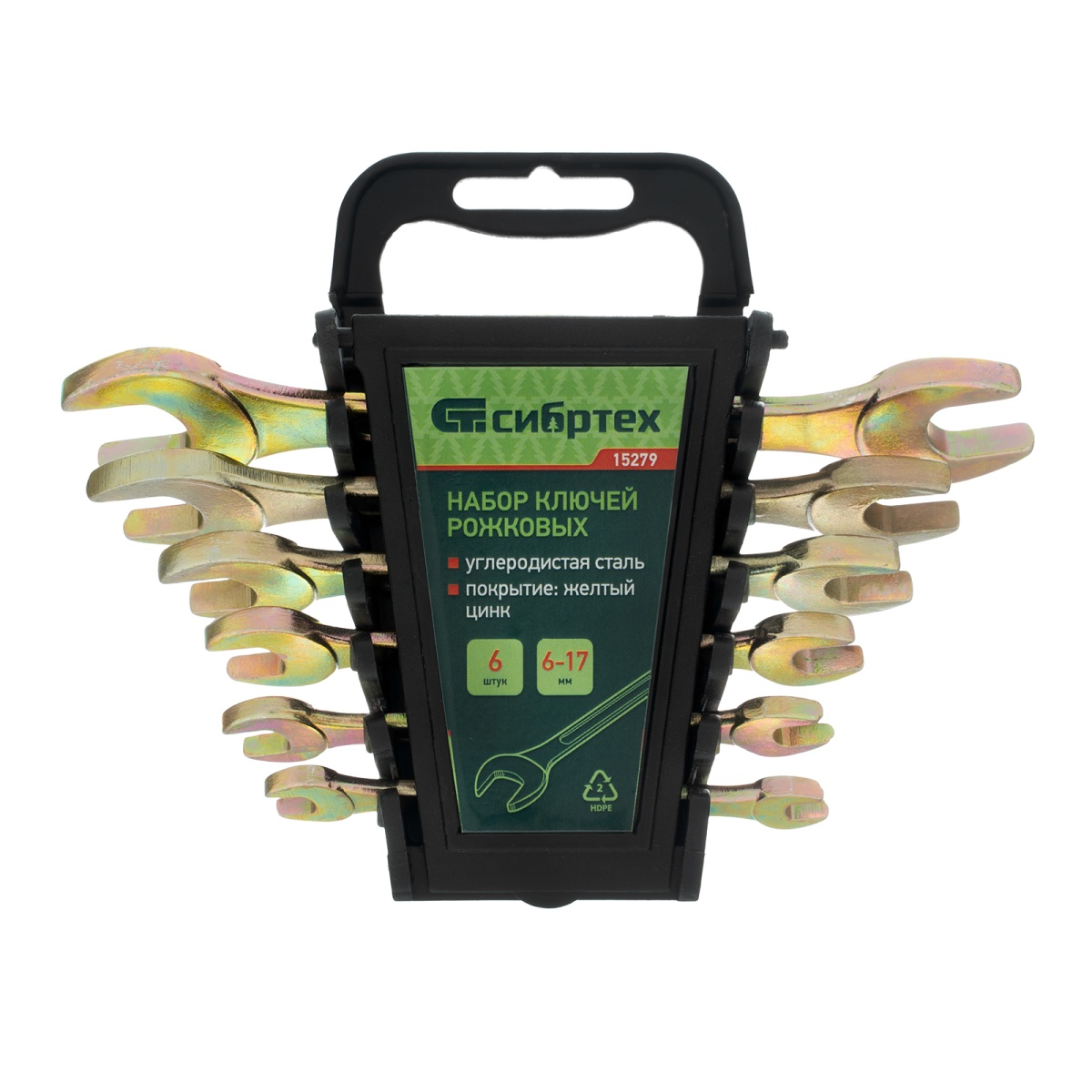 Купить Набор ключей рожковых 6-17 мм, 6 шт, желтый цинк Сибртех V4390 по лучшей цене с доставкой - интернет магазин №1 в России