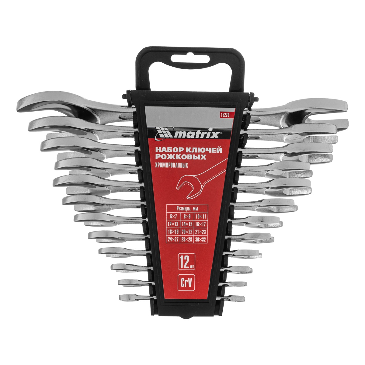 Купить Набор ключей рожковых, 6 х 32 мм, 12 шт., CrV, хромированные Matrix V4400 по лучшей цене с доставкой - интернет магазин №1 в России