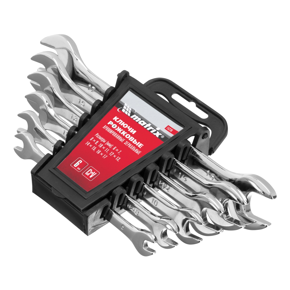 Купить Набор ключей рожковых 6 шт, 6-17 мм, CrV, Elliptical, зеркальное хромирование Matrix V4389 по лучшей цене с доставкой - интернет магазин №1 в России