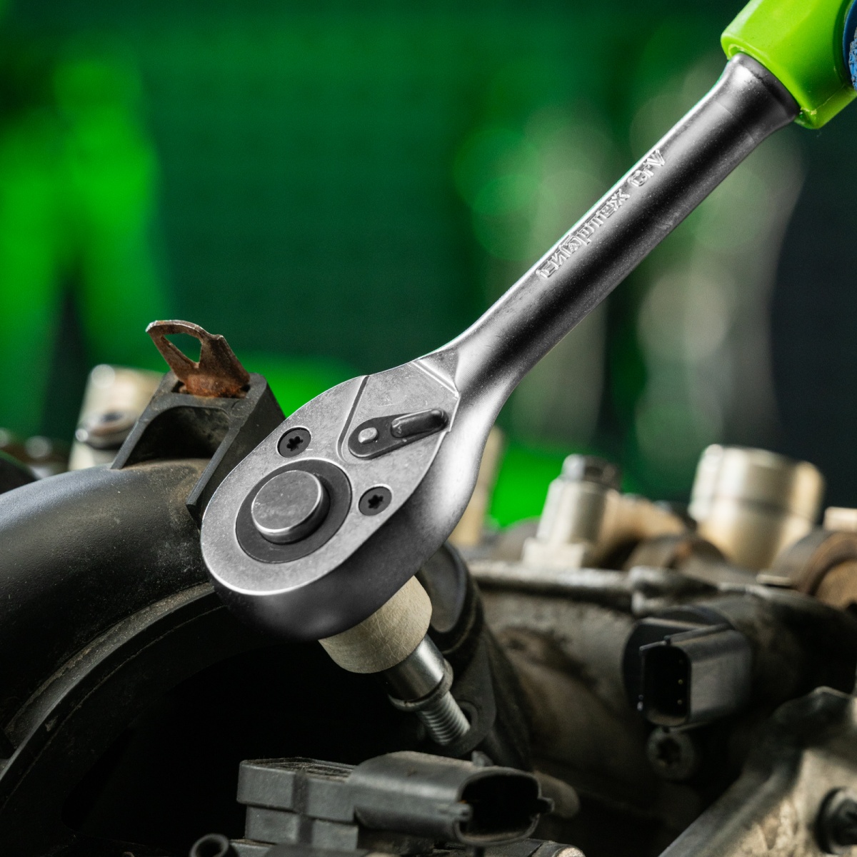 Наличие клапана для сброса давления Ключ-трещотка 1/2", 45 зубьев, с быстрым сбросом, матовый хром Сибртех