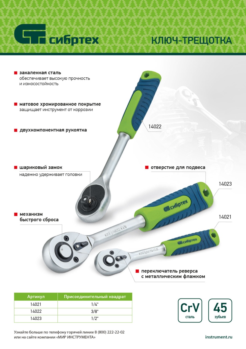 Купить Ключ-трещотка 1/2", 45 зубьев, с быстрым сбросом, матовый хром Сибртех V2649 по лучшей цене с доставкой - интернет магазин №1 в России