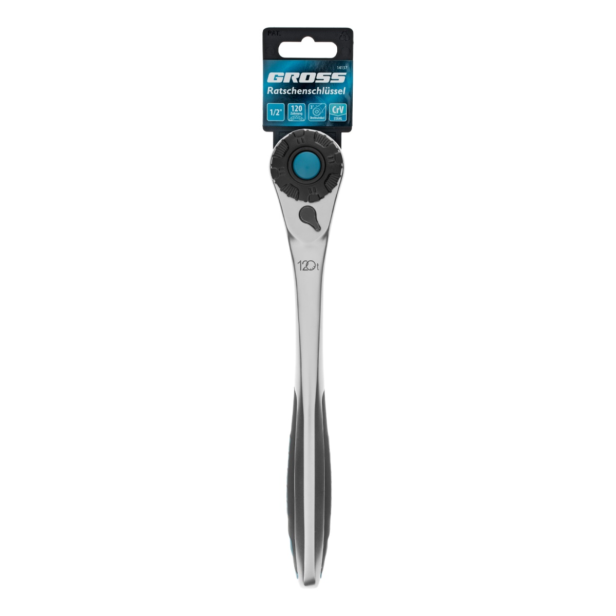 Ключ-трещотка 1/2", CrV, 120 зубьев, с быстрым сбросом, цельнометаллический, хром Gross