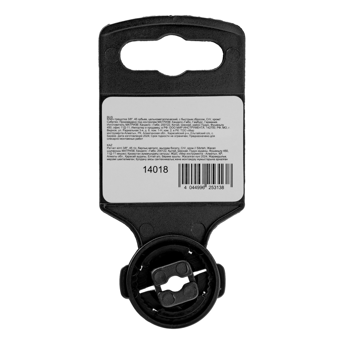 Наличие клапана для сброса давления Ключ-трещотка 3/8", 45 зубьев, цельнометаллический, с быстрым сбросом, CrV, хром Сибртех