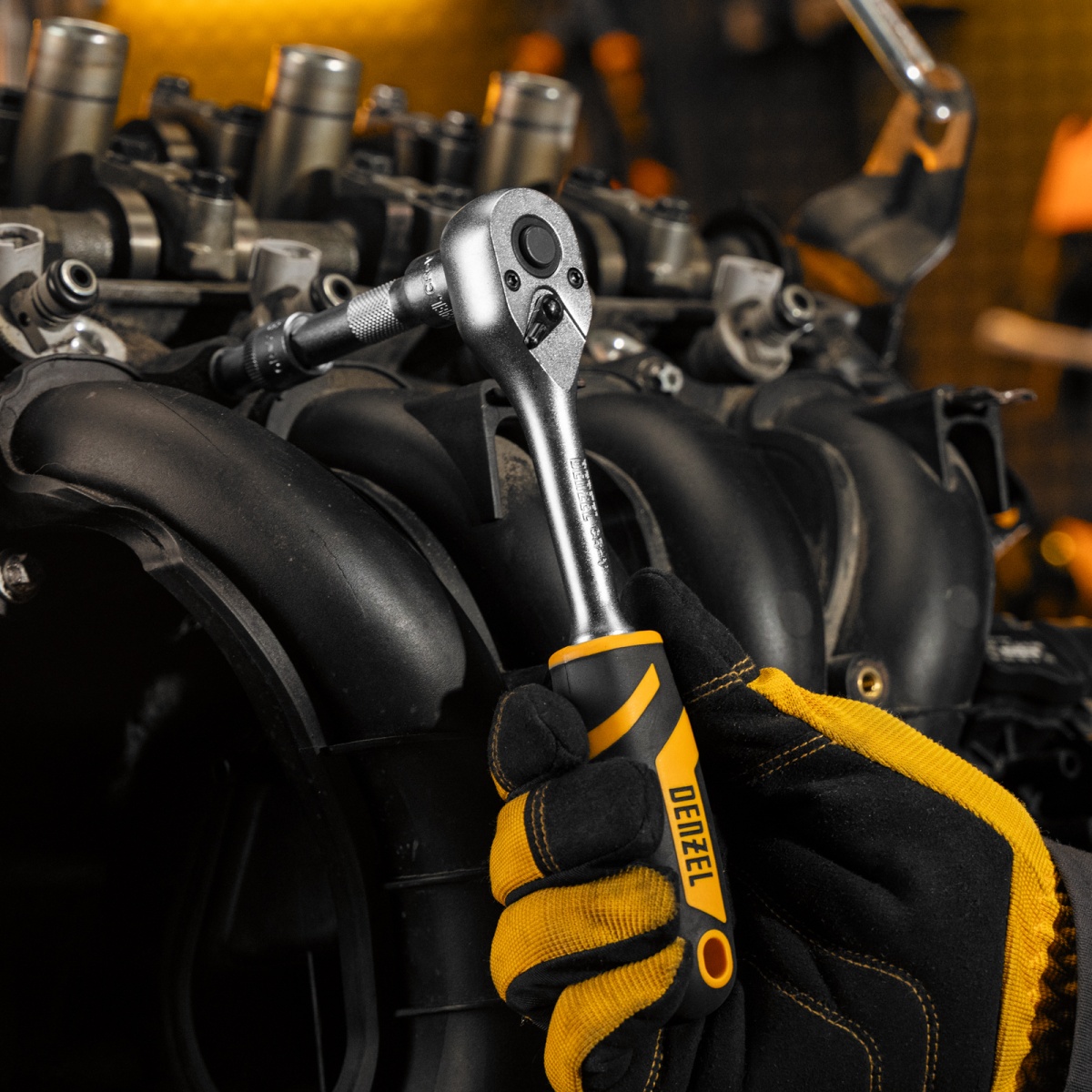 Купить Ключ-трещотка 3/8", 90 зубьев, с быстрым сбросом, CrV Denzel V2676 по лучшей цене с доставкой - интернет магазин №1 в России
