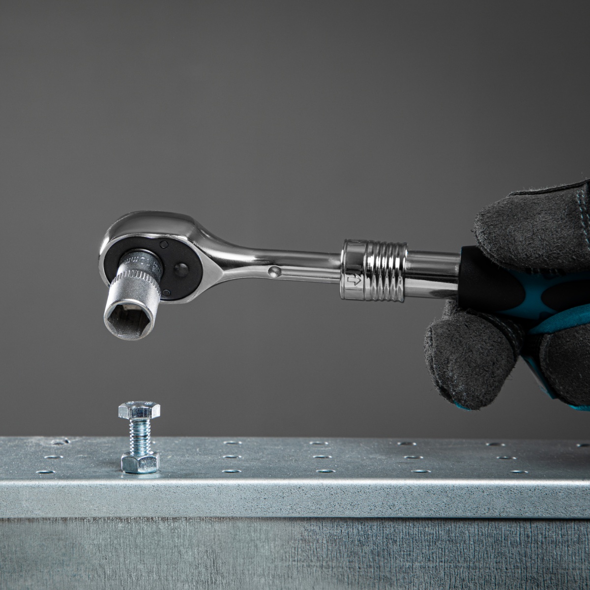 Ключ-трещотка телескопический 1/4", 150-200 мм, CrV, 72 зуба, с быстрым сбросом, хром Gross