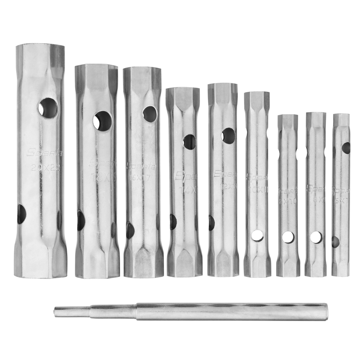 Набор ключей трубчатых торцевых, 6 - 22 мм, вороток, оцинкованные, 9 шт. Sparta