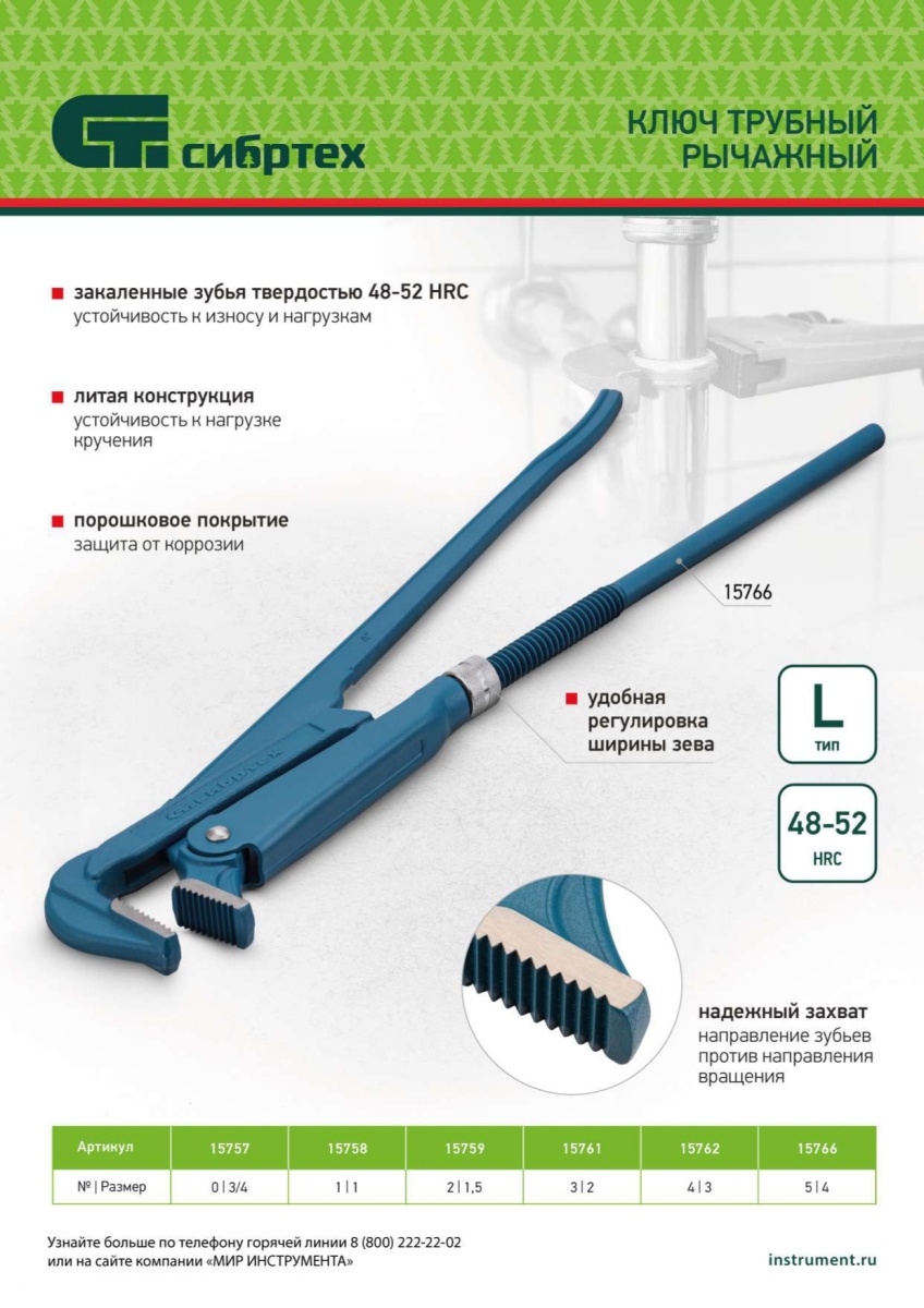 Купить Ключ трубный рычажный №3, 2", литой, тип "L" Сибртех V2610 по лучшей цене с доставкой - интернет магазин №1 в России