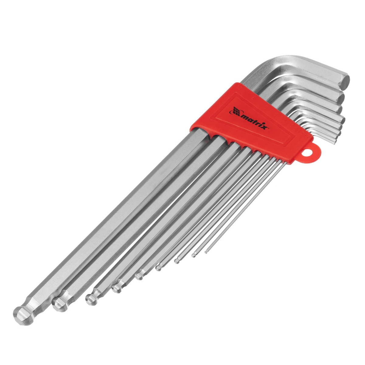 Купить Набор ключей имбусовых HEX, 1.5-10 мм, CrV, 9 шт, экстра-длинные, c шаром, сатин Matrix V4298 по лучшей цене с доставкой - интернет магазин №1 в России