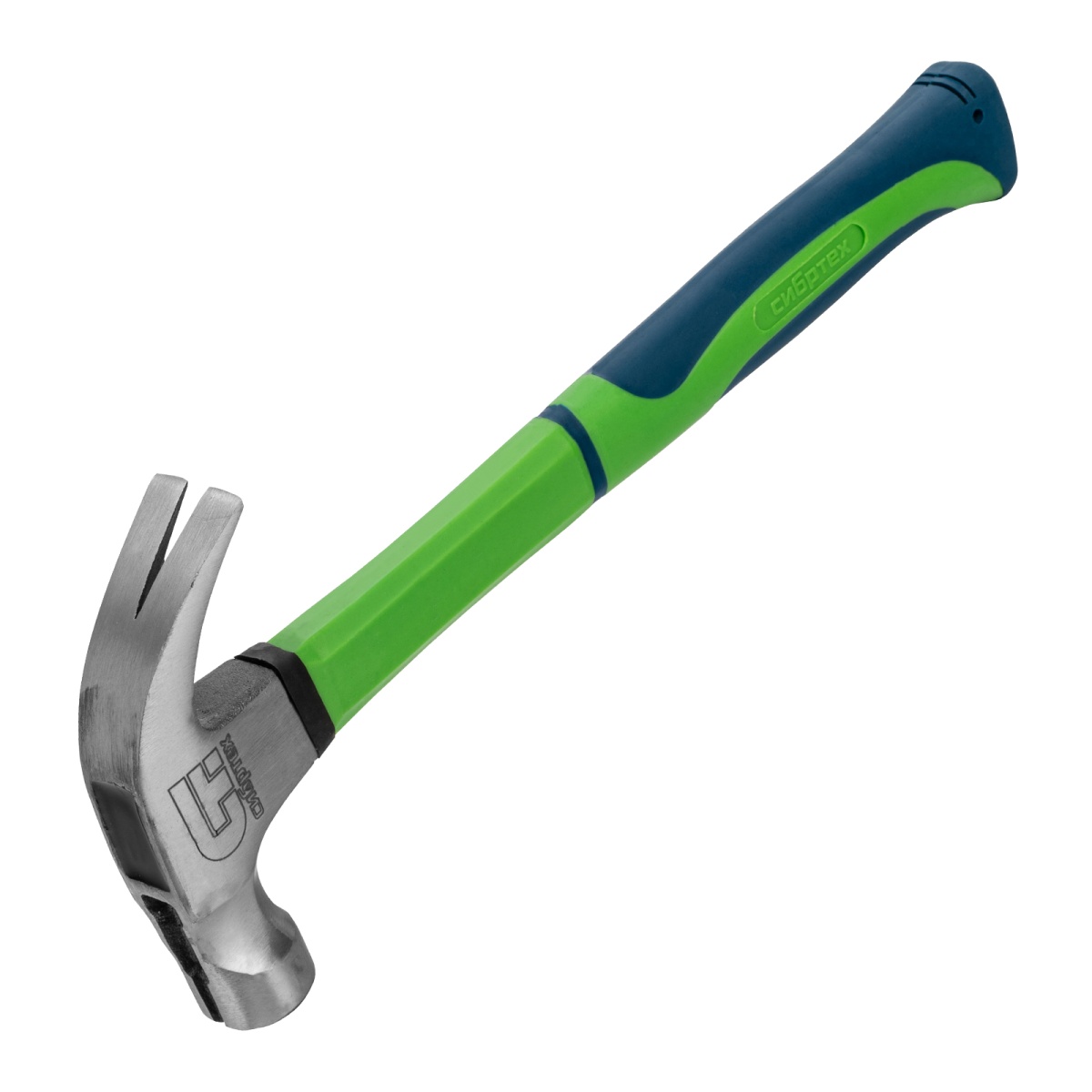 Молоток-гвоздодер, 450 г, с магнитом, фибергласовая обрезиненная рукоятка Сибртех