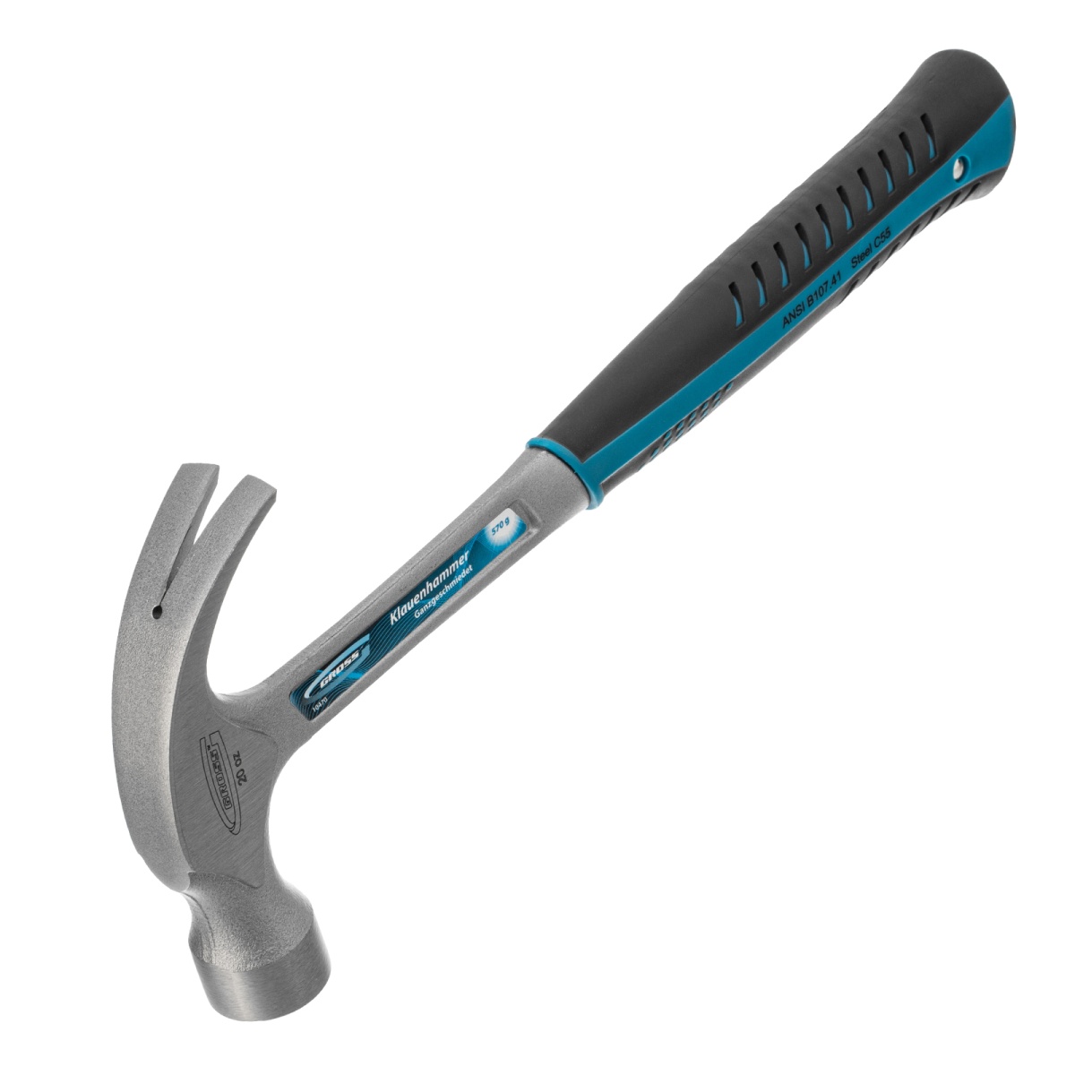 Молоток-гвоздодер, 570 г, цельнокованый, трехкомпонентная рукоятка Gross