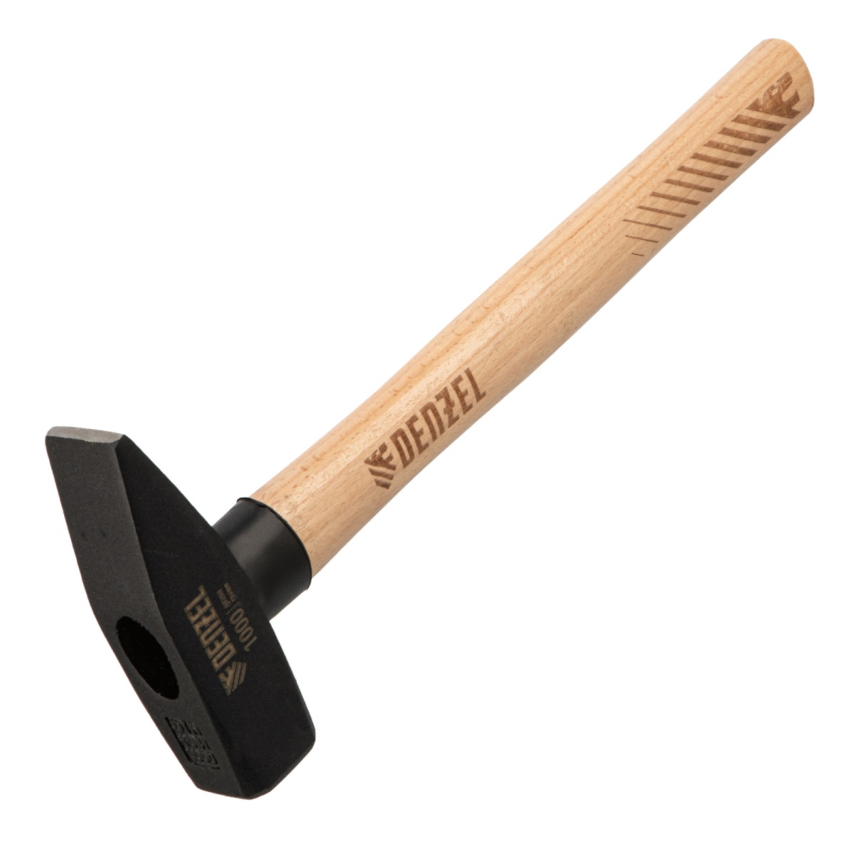 Молоток слесарный, 1000 г, кованый квадратный боек, буковая рукоятка Denzel