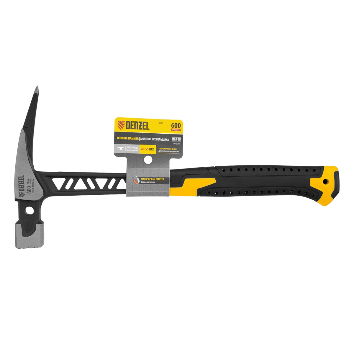 Молоток кровельщика 600 г, цельнокованый, боек с магнитом, двухкомп. обрезин. рук-ка Denzel