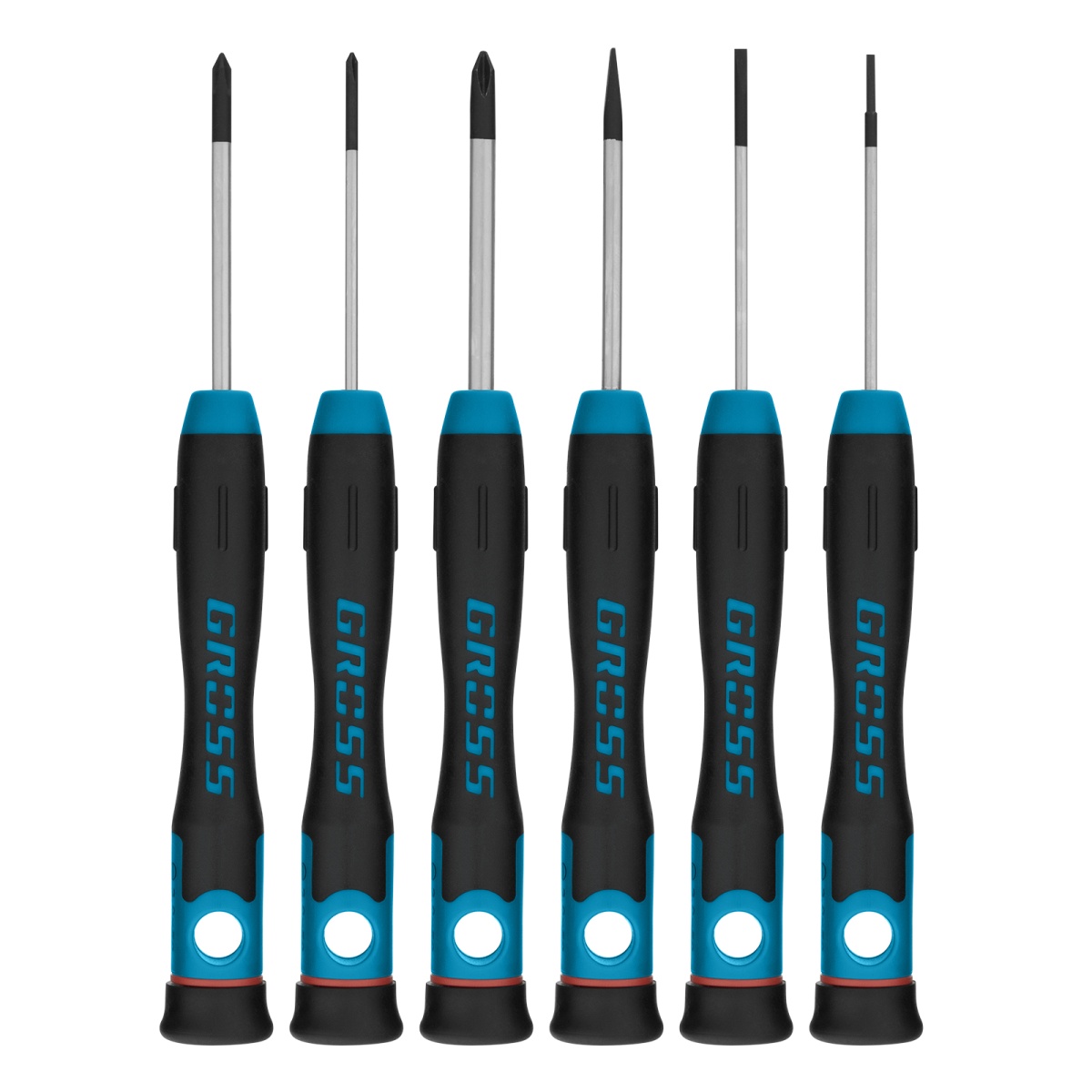 Набор отверток для точной механики, CrMo, двухкомпонентные рукоятки, 6 шт, пластиковый бокс Gross