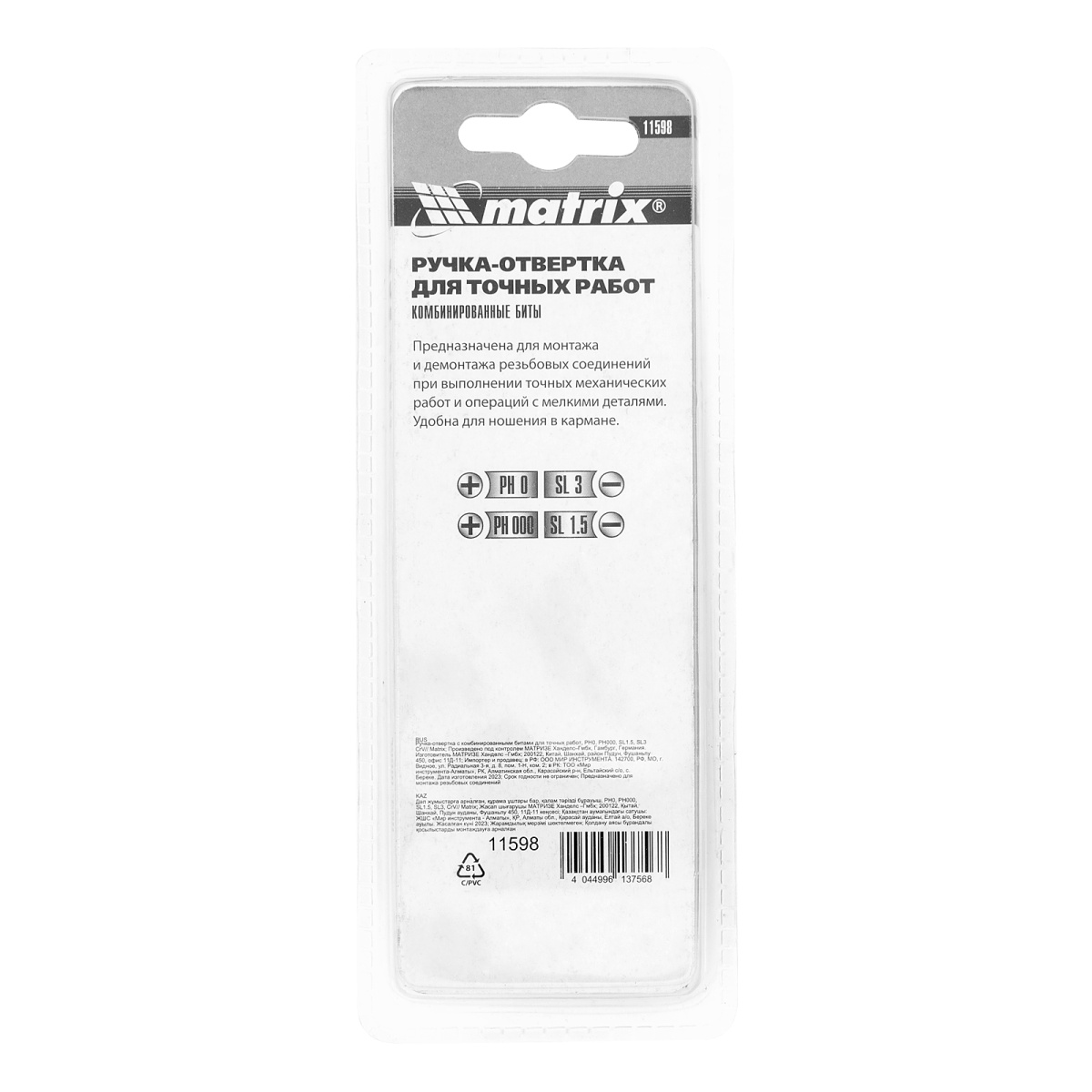 Ручка-отвертка с комбинированными битами для точных работ, PH0, PH000 SL 1.5, SL3 CrV Matrix