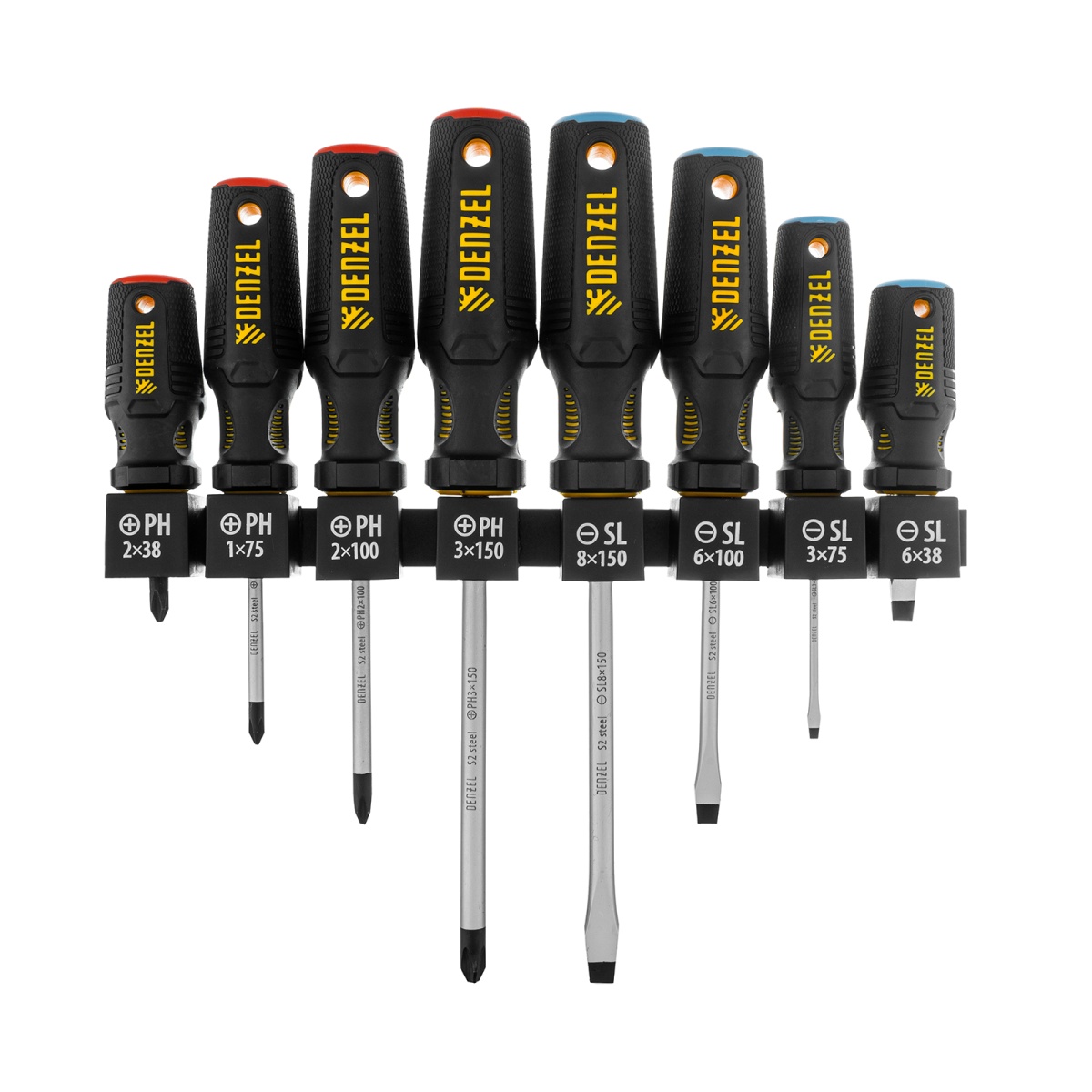 Набор отверток на полке, 8 шт., PH+SL, S2, 3к рукоятка Denzel