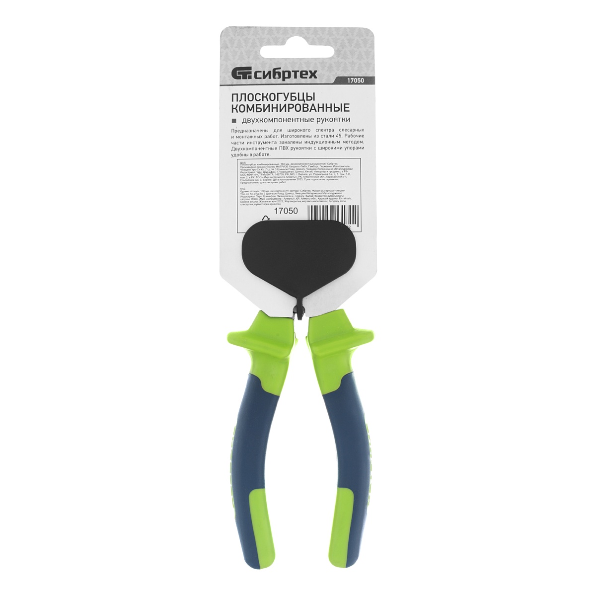 Плоскогубцы комбинированные, 160 мм, двухкомпонентные рукоятки Сибртех