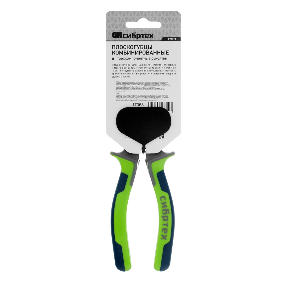 Плоскогубцы комбинированные, 160 мм, фосфатирование, трехкомпонентные рукоятки Сибртех