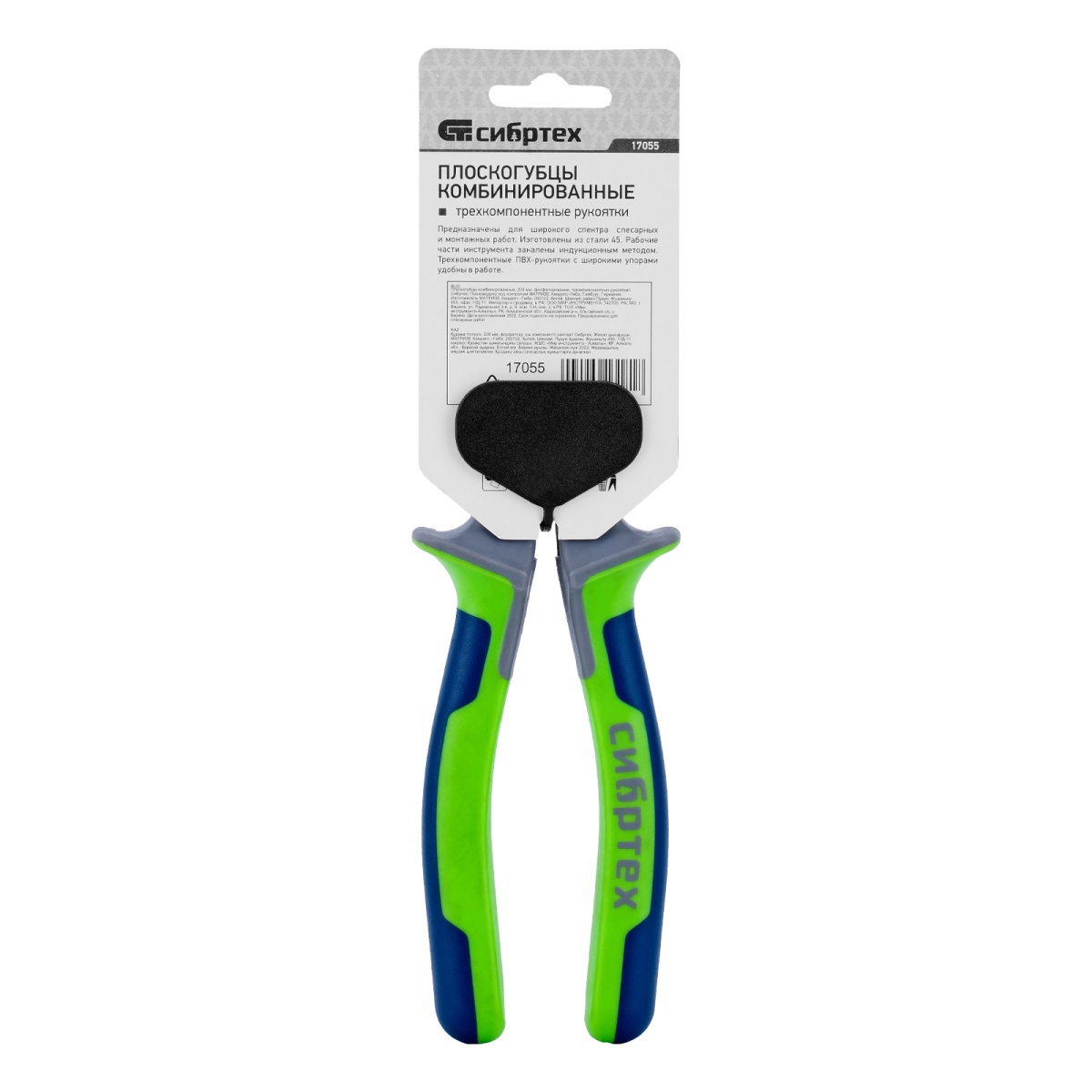 Плоскогубцы комбинированные, 200 мм, фосфатирование, трехкомпонентные рукоятки Сибртех