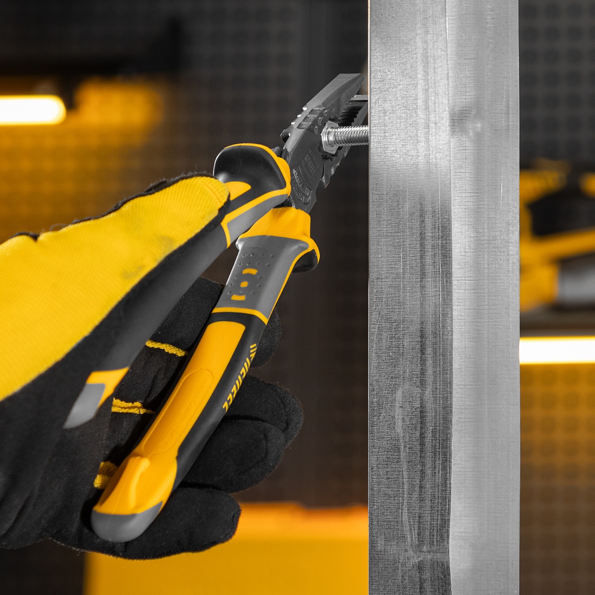 Наличие клапана для сброса давления Плоскогубцы комбинированные 205 мм, трехкомпонентные рукоятки Denzel
