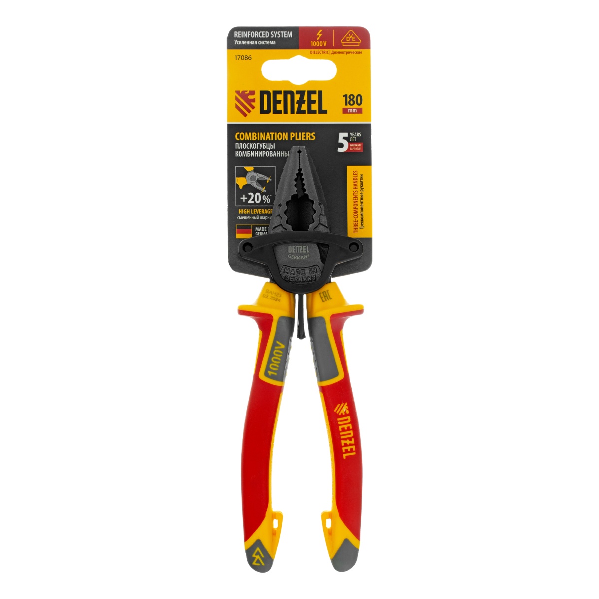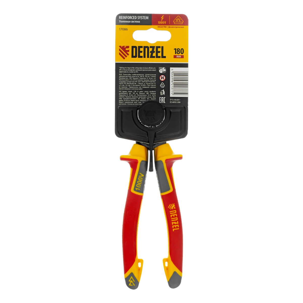 Купить Плоскогубцы комбинированные, диэлектрические трехкомпонентные рукоятки до 1000 В, 180 мм Denzel V5678 по лучшей цене с доставкой - интернет магазин №1 в России