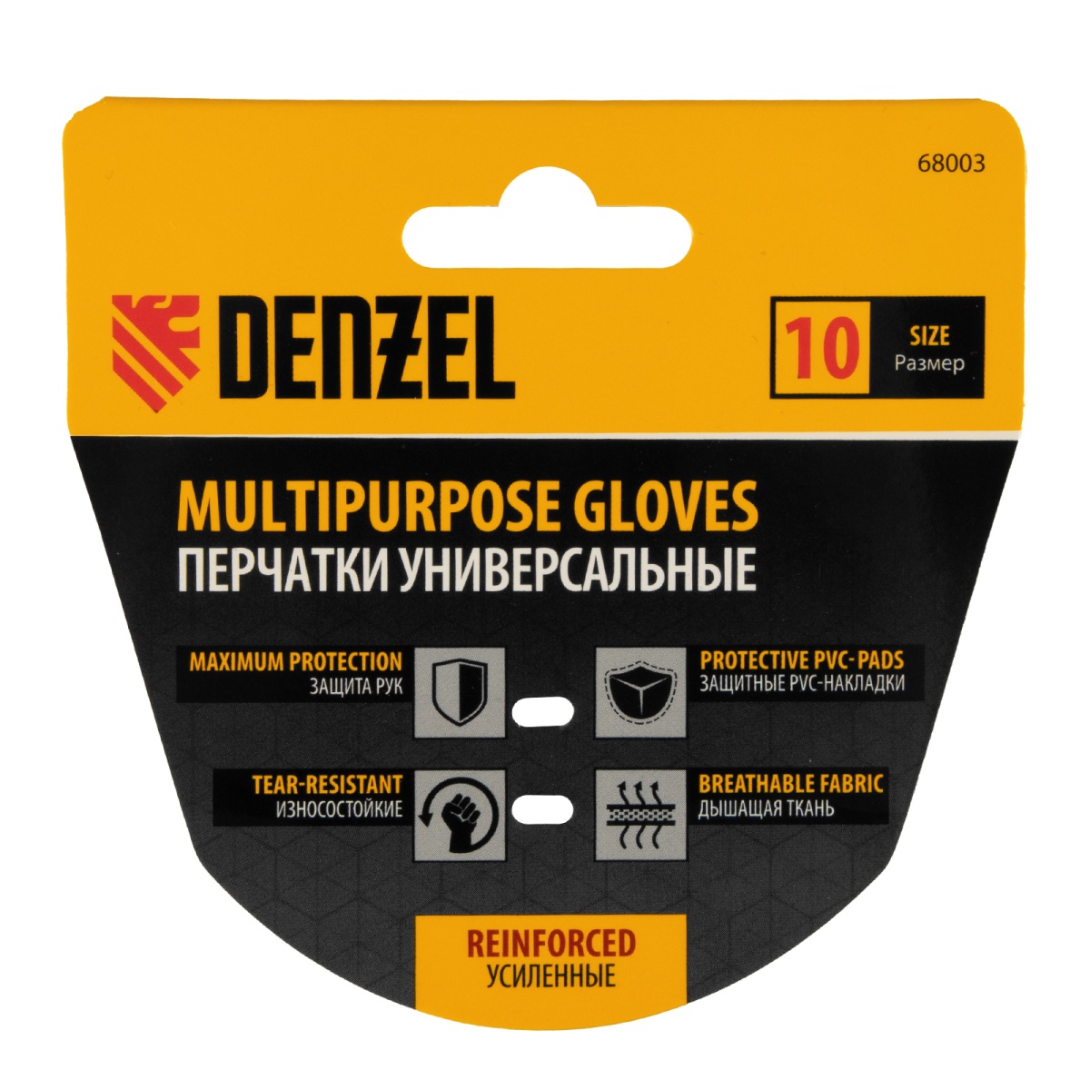 Купить Перчатки универсальные, усиленные, с защитными накладками, размер 10 Denzel V5339 по лучшей цене с доставкой - интернет магазин №1 в России