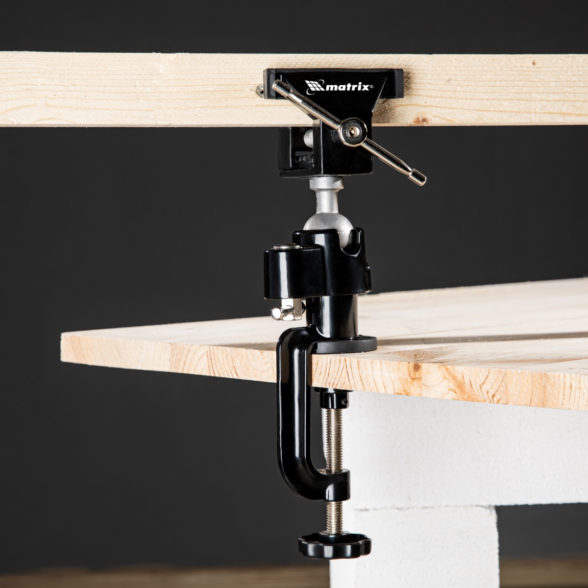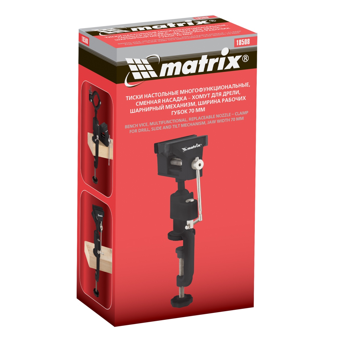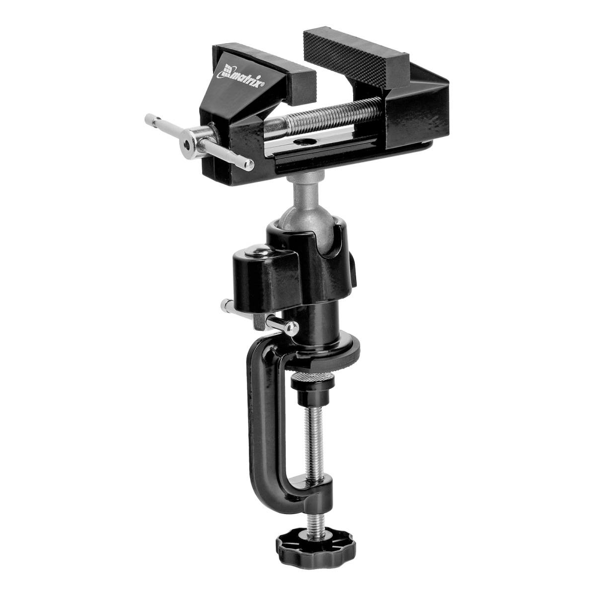 Купить Тиски настольные, многофункциональные, сменная насадка, хомут для дрели, шарнирный механизм, 70 мм Matrix V7121 по лучшей цене с доставкой - интернет магазин №1 в России