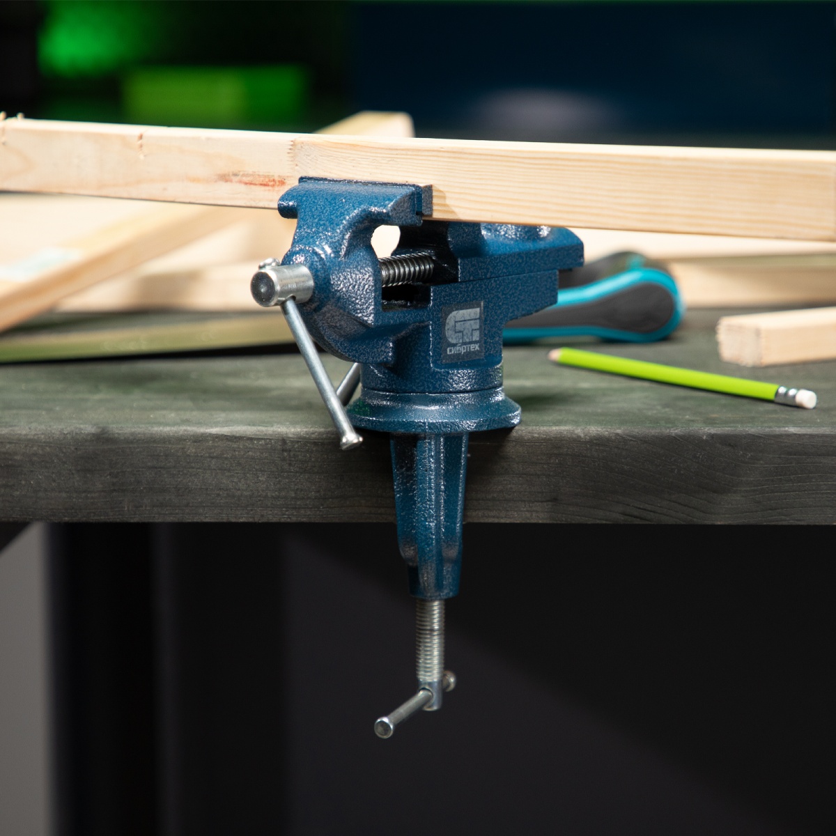 Купить Тиски слесарные, настольные, поворотные, ширина рабочих губок 65 мм, наковальня Сибртех V7143 по лучшей цене с доставкой - интернет магазин №1 в России