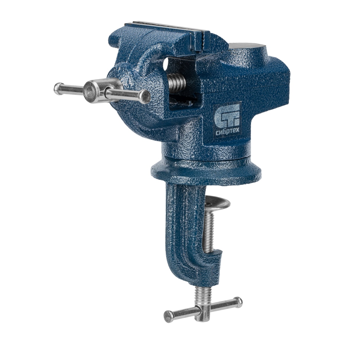 Тиски слесарные, настольные, поворотные, ширина рабочих губок 65 мм, наковальня Сибртех