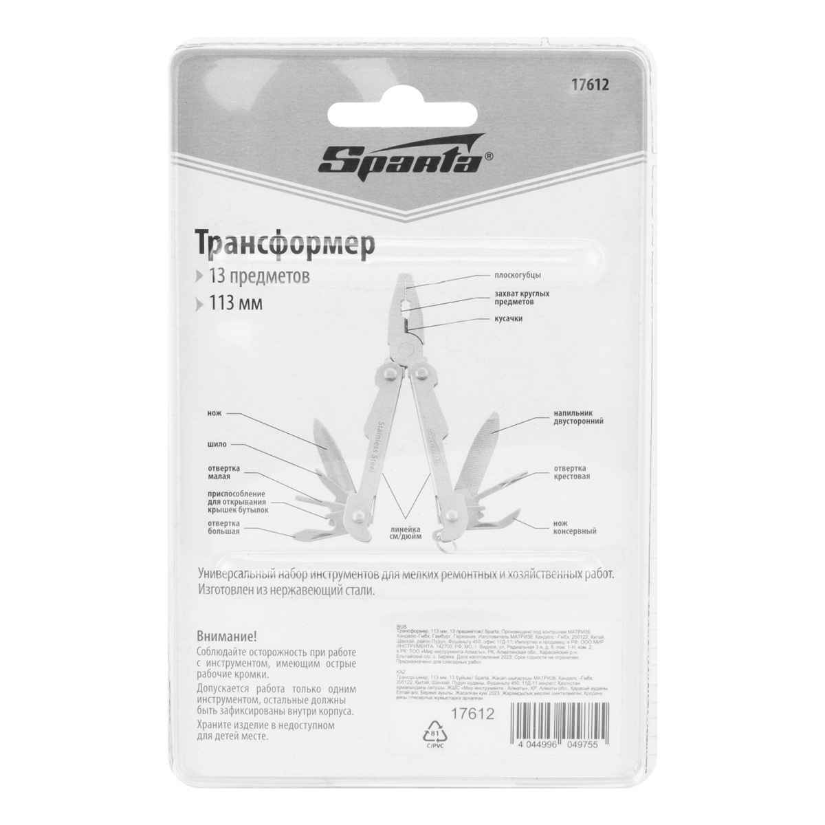 Купить Трансформер, 113 мм, 13 предметов Sparta V7230 по лучшей цене с доставкой - интернет магазин №1 в России