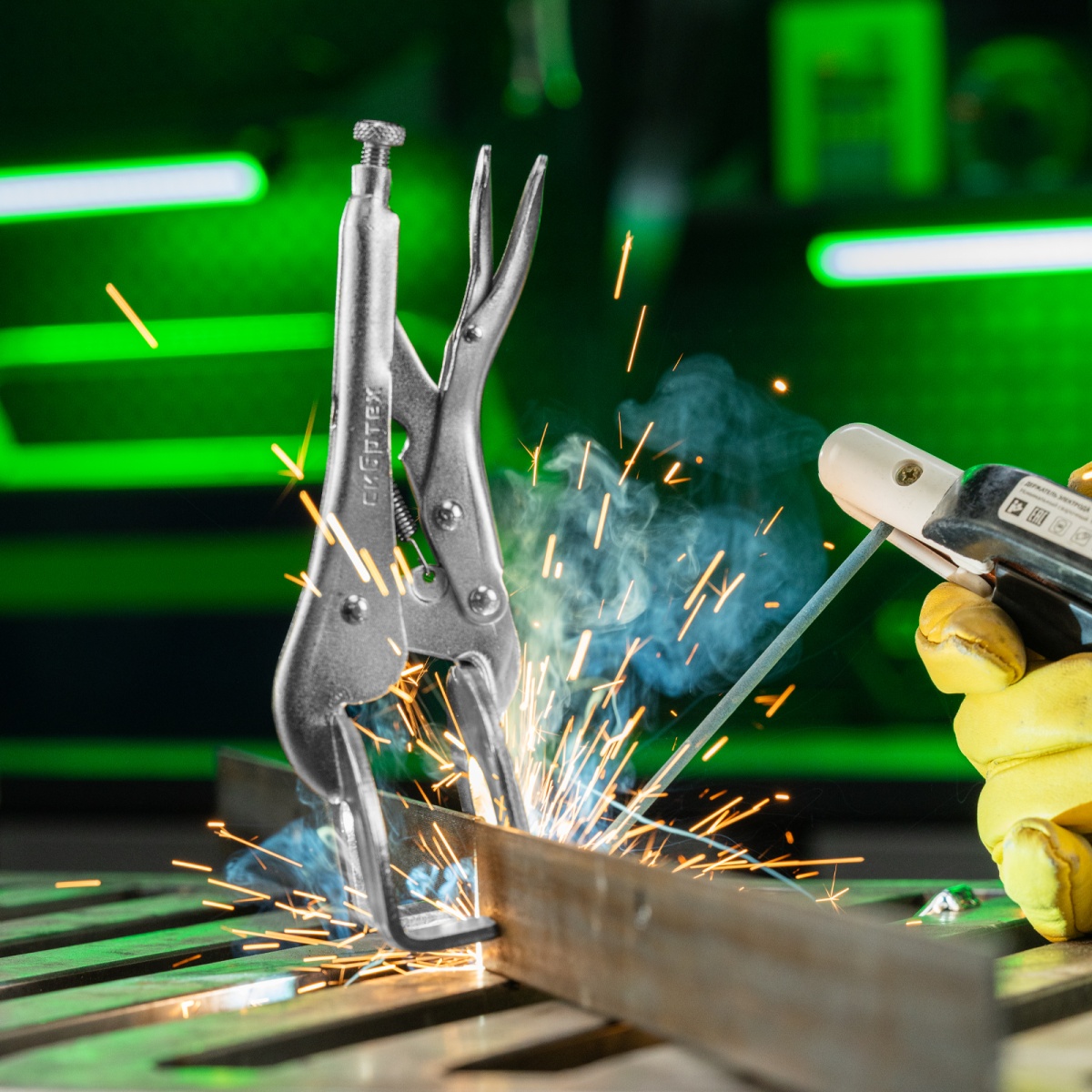 Купить Зажим ручной, двойной, точечная фиксация, 225 мм Сибртех V1821 по лучшей цене с доставкой - интернет магазин №1 в России