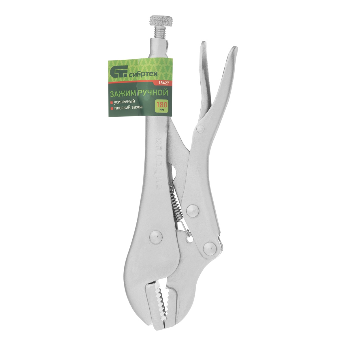 Купить Зажим ручной, усиленный, плоский захват, 180 мм Сибртех V1828 по лучшей цене с доставкой - интернет магазин №1 в России