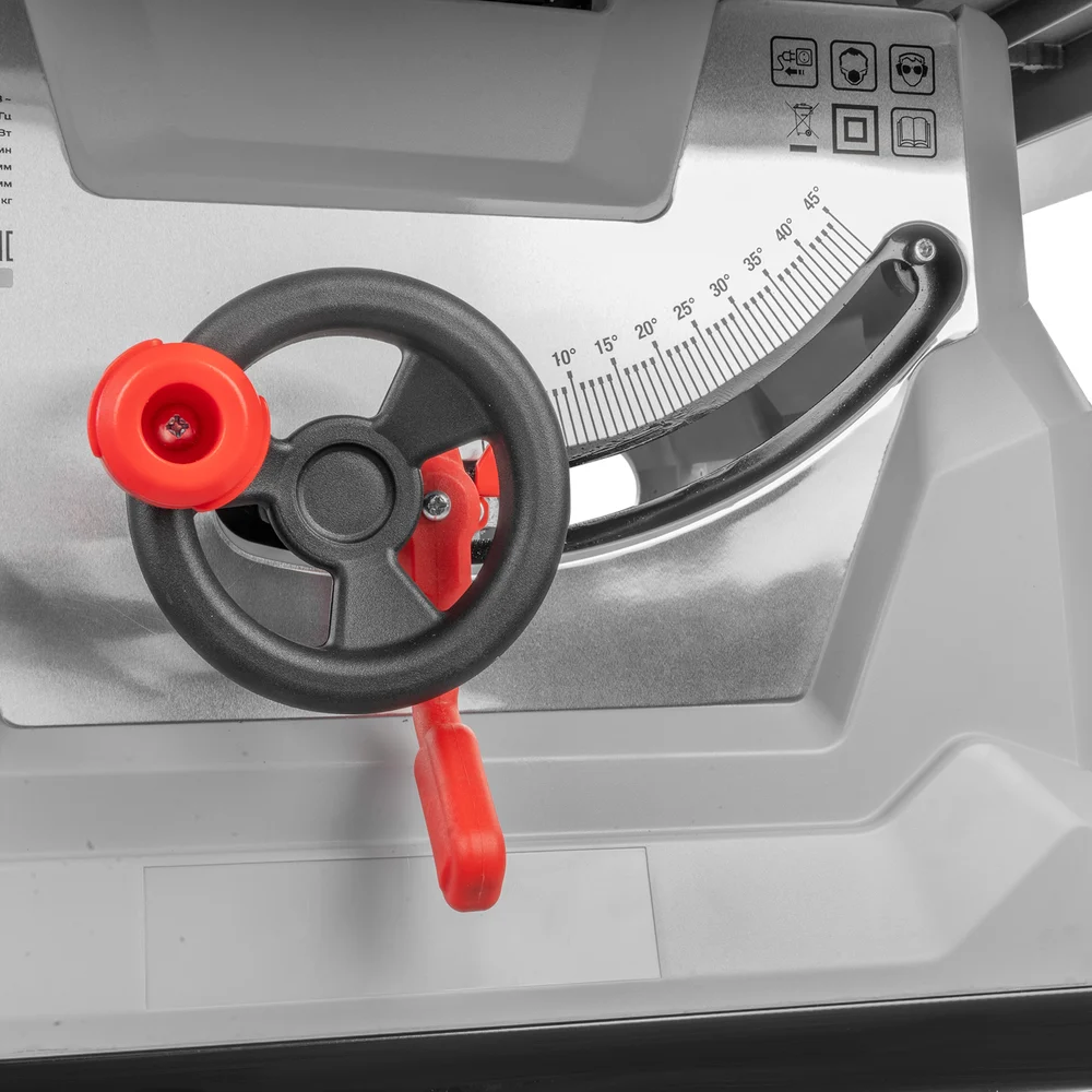 Комплектация Пильный диск 1 шт; Дополнительный стол с кронштейнами 3 комплекта; Опорные ножки 1 комплект; Параллельный упор с ручкой фиксации 1 шт; Упор для поперечного распила 1 шт; Толкатель 1 шт; Защитный кожух пильного диска 1 шт; Шестигранный ключ 1 шт; Гаечный ключ 2 шт