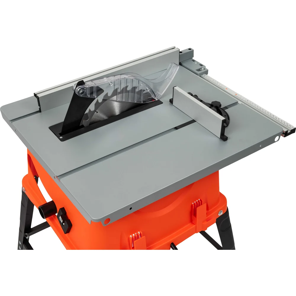 Комплектация Распиловочный станок – 1 шт; Кожух защитный – 1 шт; Продольная направляющая в сборе – 1 шт; Упор угловой – 1 шт; Ключ гаечный – 2 шт; Толкатель подачи заготовки – 1 шт; Пылеотводный шланг – 1 шт; Станина с креплением – 1 шт; Резиновые опоры – 4 шт