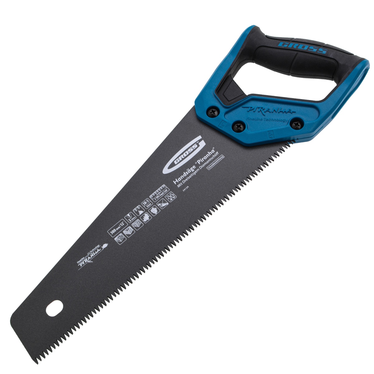 Ножовка по дереву "PIRANHA", 300 мм, 7 TPI, 3D-зуб, тефлоновое покрытие полотна, двухкомпонентная рукоятка Gross