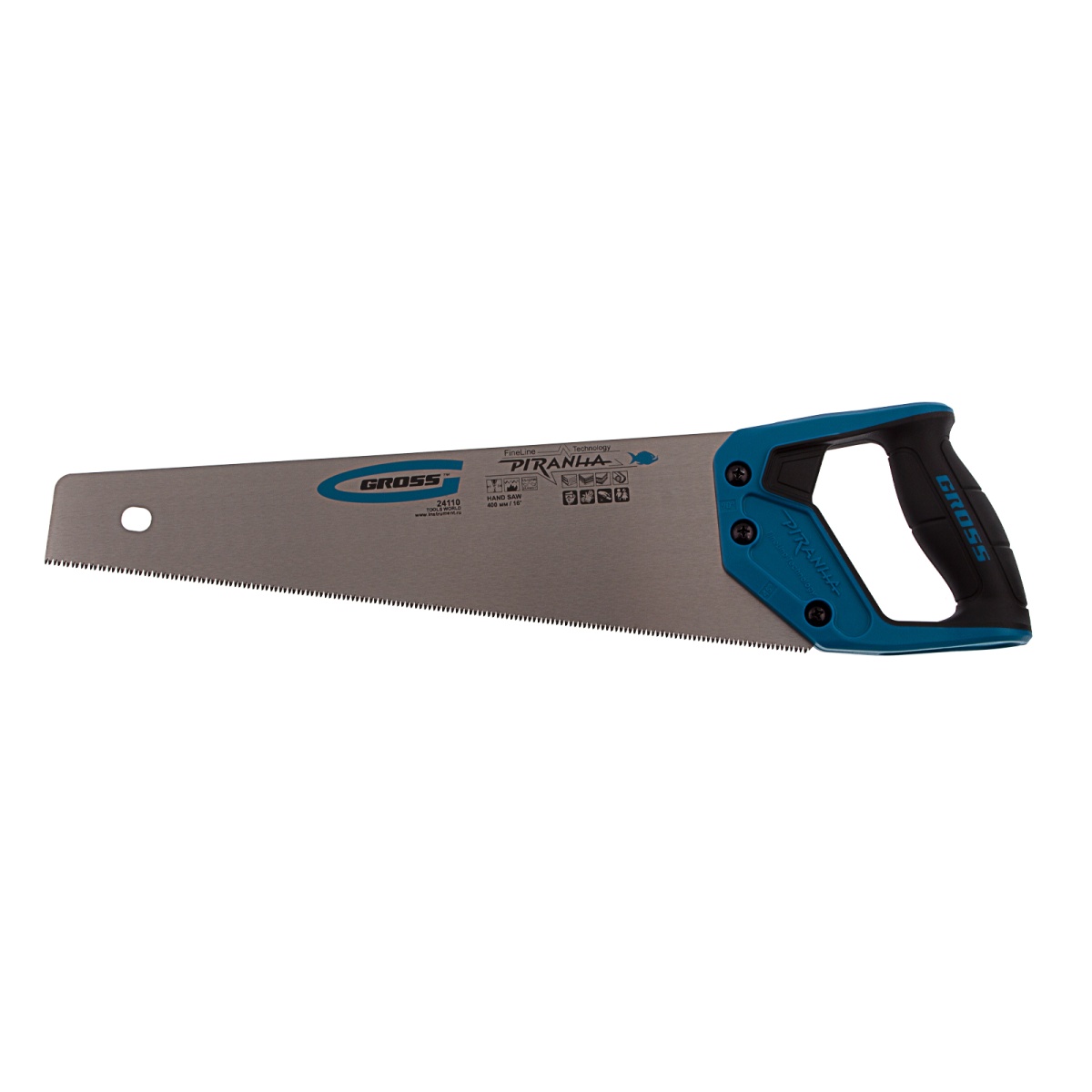 Ножовка по дереву "Piranha", 400 мм, 11-12 TPI, зуб-3D, каленый зуб, двухкомпонентная рукоятка Gross