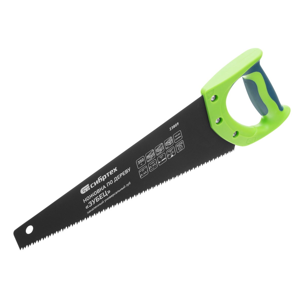 Ножовка по дереву "Зубец", 350 мм, 7-8 TPI, каленый зуб 2D, защитное покрытие, двухкомпонентная рукоятка Сибртех