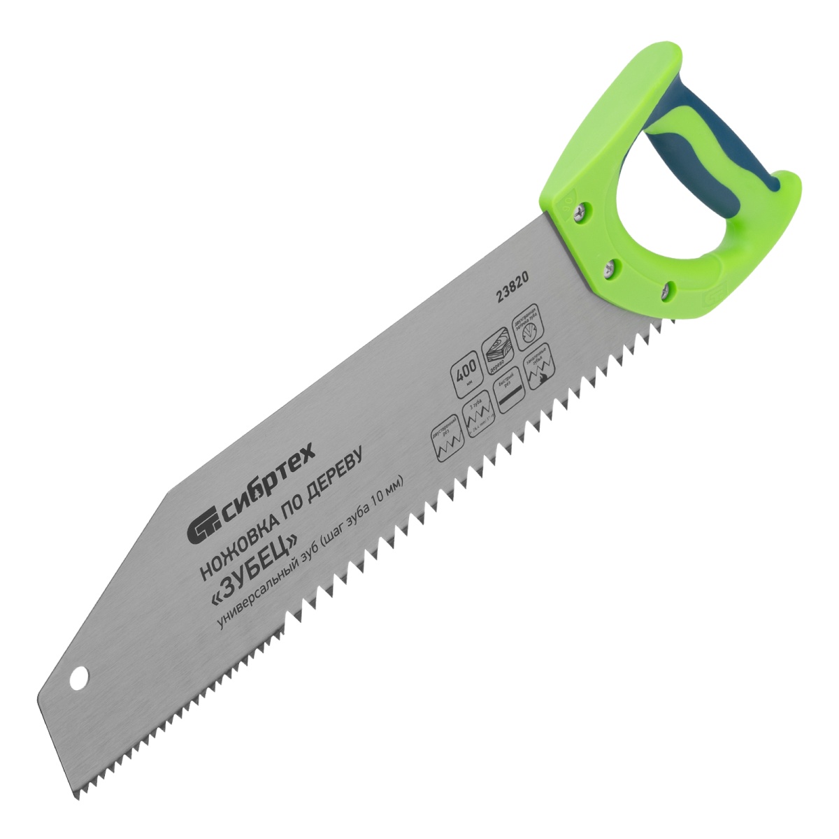 Купить Ножовка по дереву "Зубец", 400 мм, шаг зуба 10 мм, каленый зуб 2D, двухкомпонентная рукоятка Сибртех V4906 по лучшей цене с доставкой - интернет магазин №1 в России