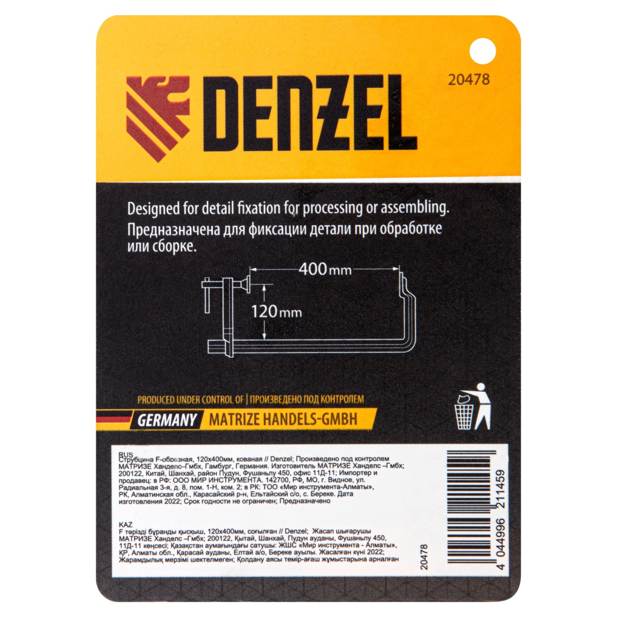 Купить Струбцина F-образная, 120x400мм, кованая Denzel V6876 по лучшей цене с доставкой - интернет магазин №1 в России