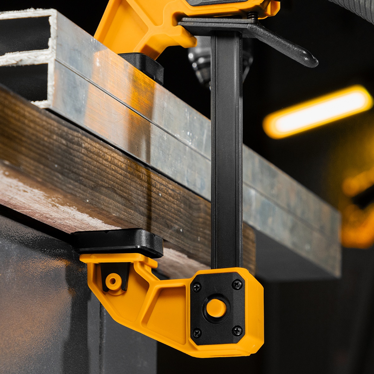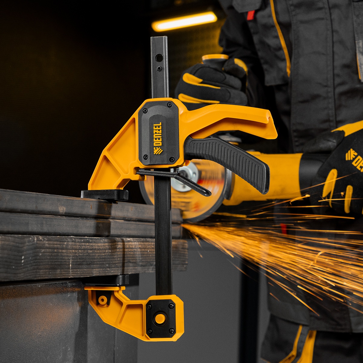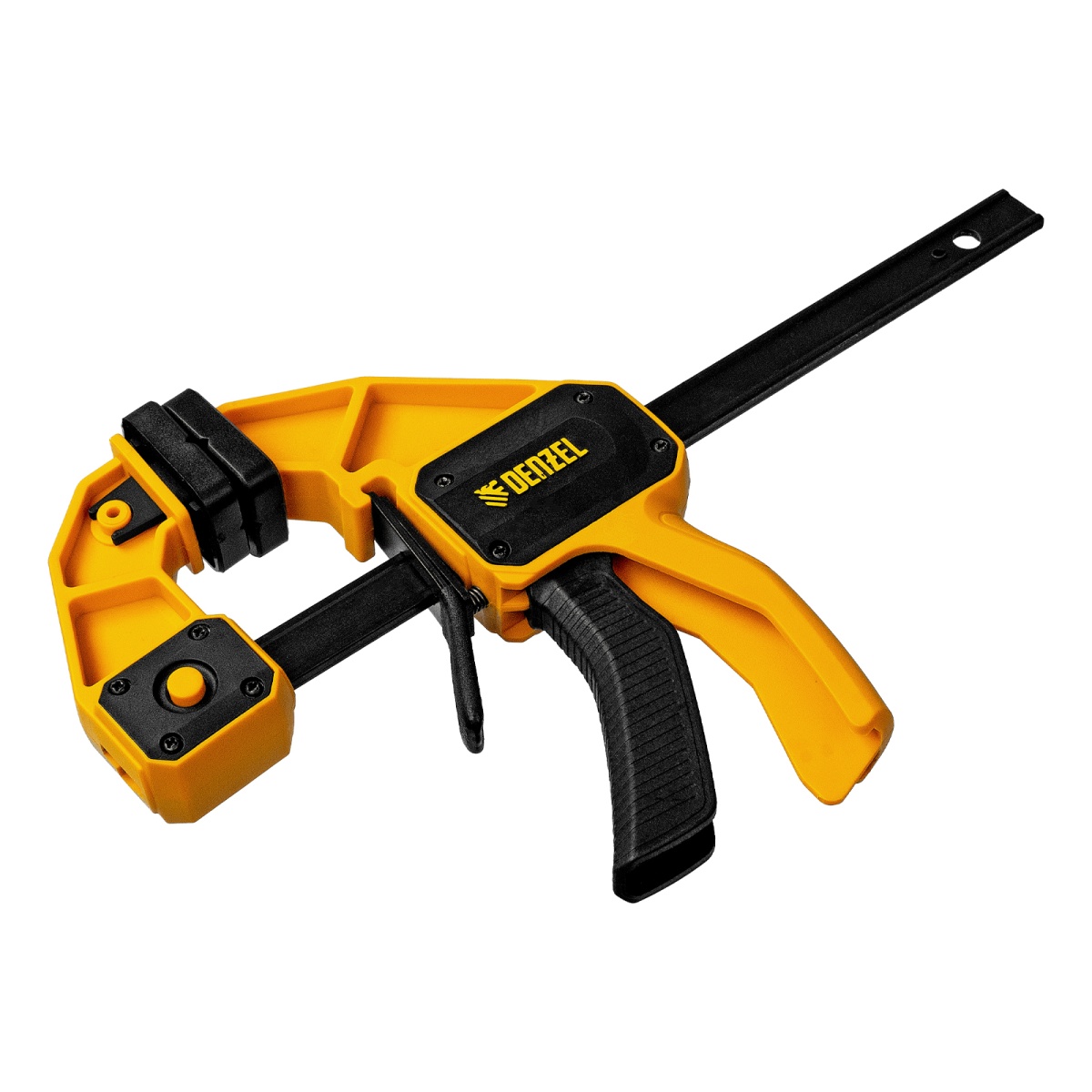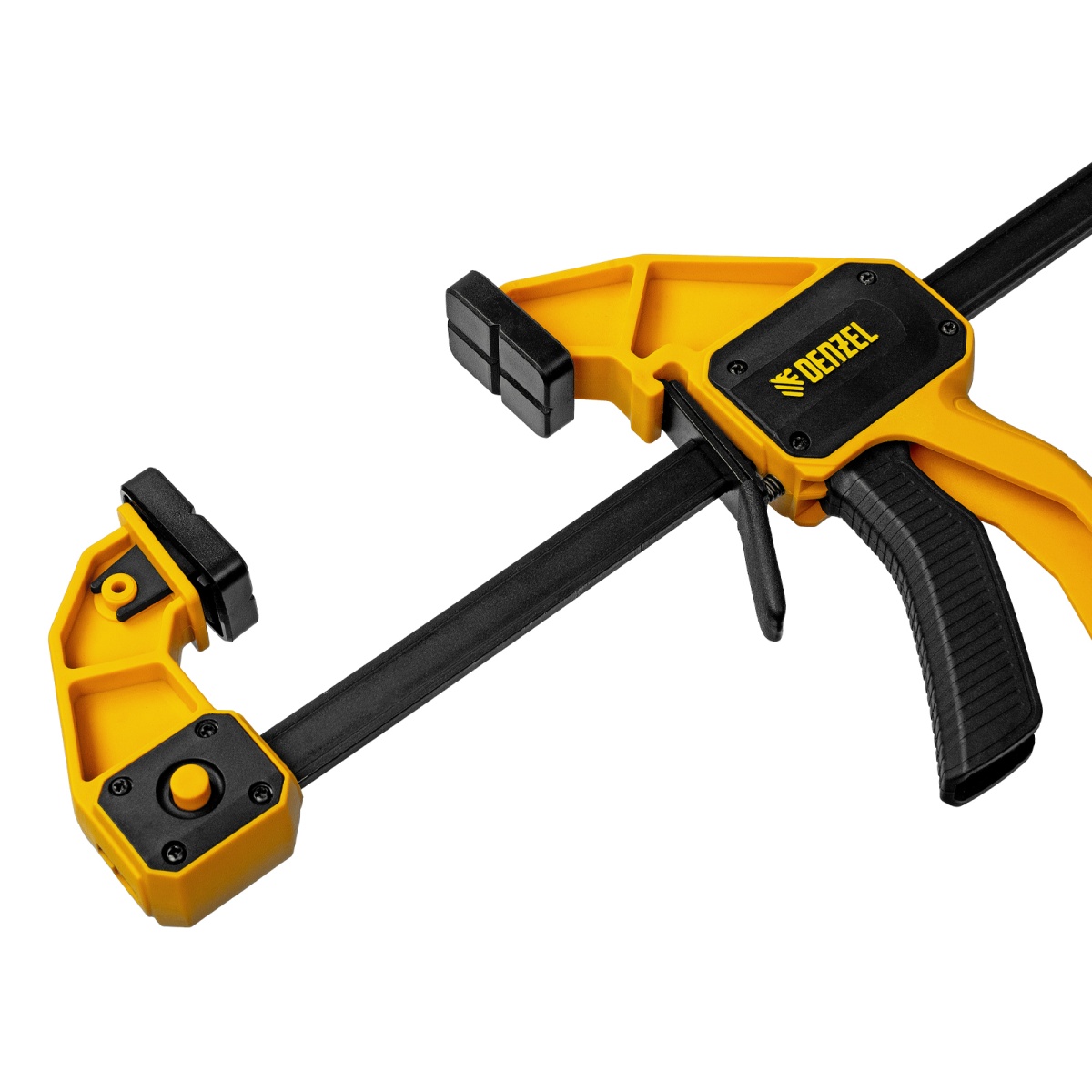 Наличие клапана для сброса давления Струбцина F-образная, быстрозажимная, 150 х 80 мм, усиленный нейлоновый корпус Denzel
