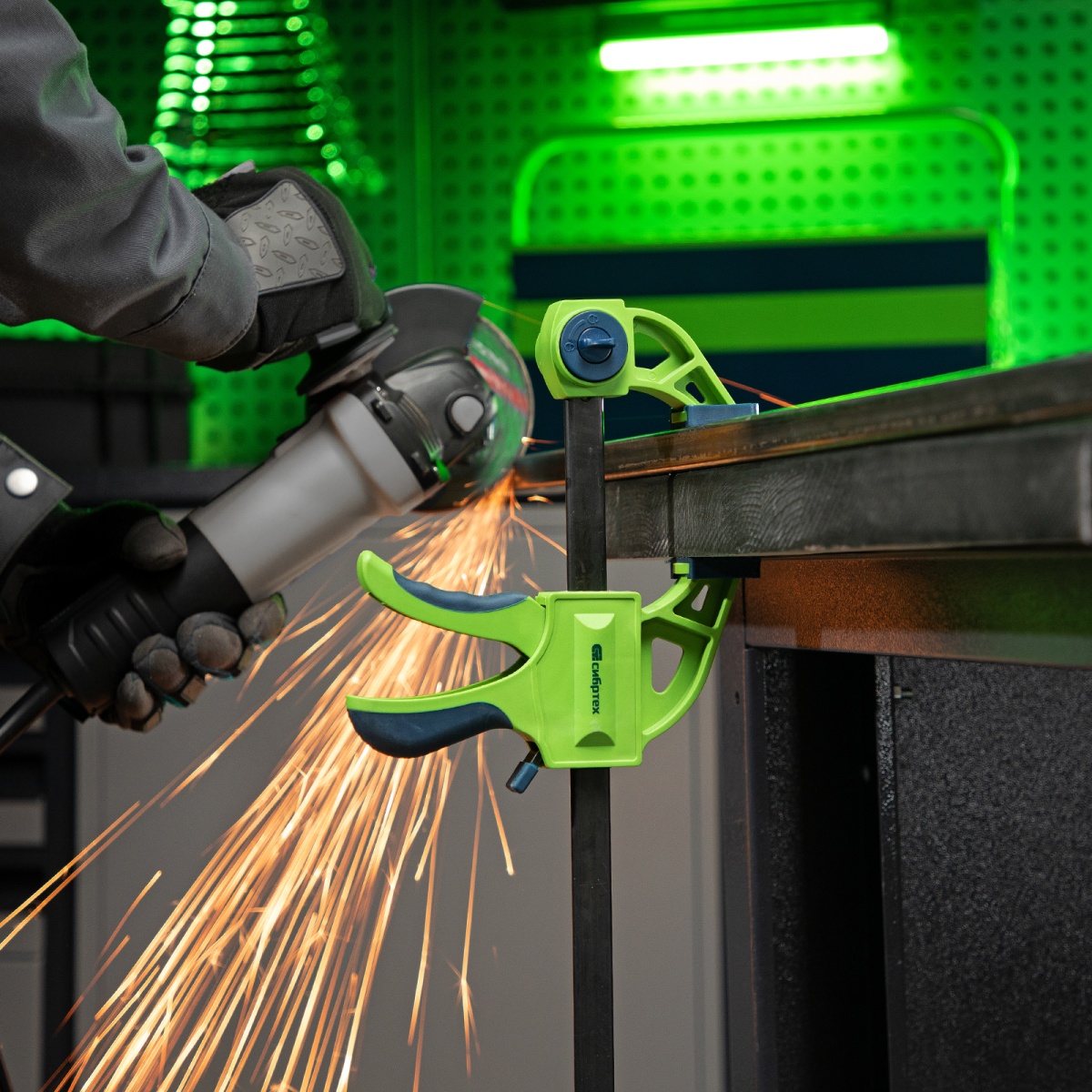 Купить Струбцина F-образная, быстрозажимная, 450 х 70 х 660 мм, пластиковый корпус, фиксатор, двухкомпонентная рукоятка Сибртех V6909 по лучшей цене с доставкой - интернет магазин №1 в России
