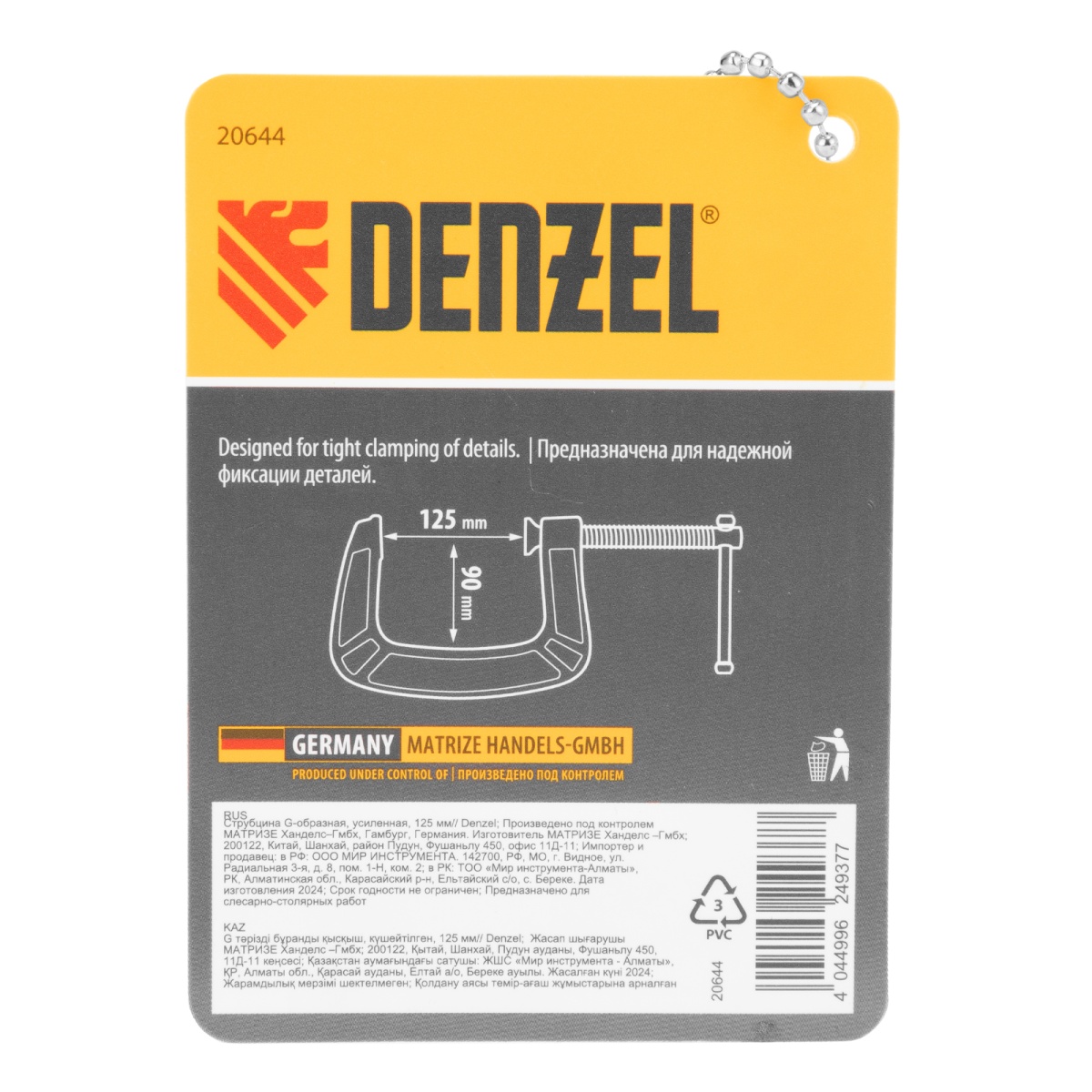 Купить Струбцина G-образная, усиленная, 125 мм Denzel V6928 по лучшей цене с доставкой - интернет магазин №1 в России