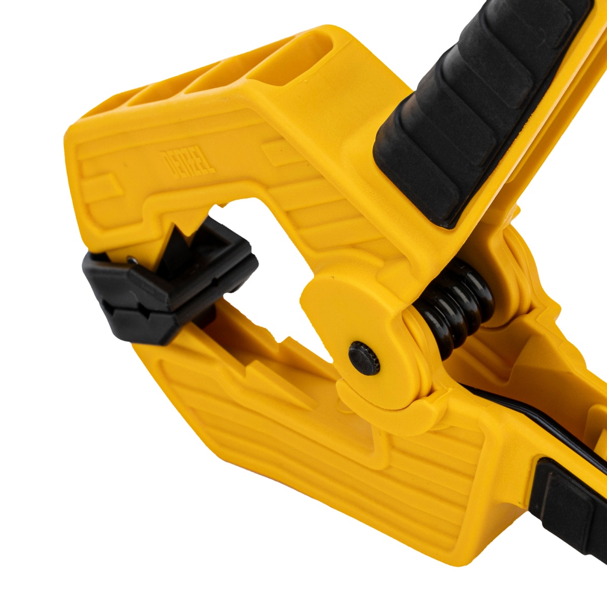 Наличие клапана для сброса давления Струбцина клещеобразная, усиленная 80 х 60 мм, двухкомпонентные рукоятки Denzel