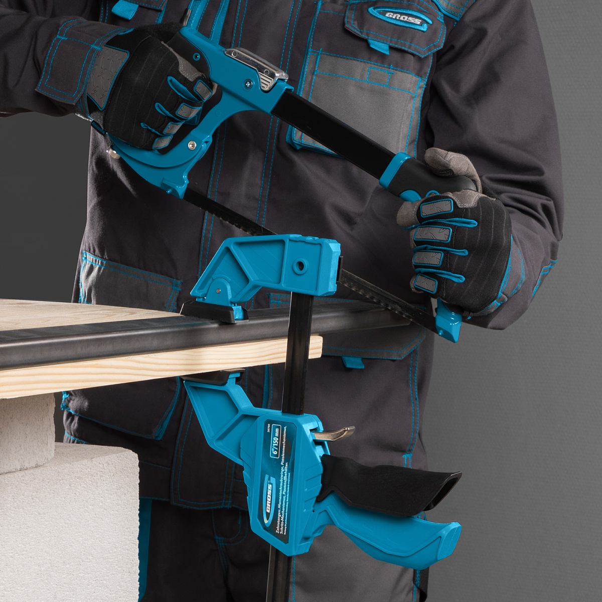 Купить Струбцина реечная, быстрозажимная, пистолетного типа, пошаговый механизм, пластиковый корпус, 150 мм Gross V6949 по лучшей цене с доставкой - интернет магазин №1 в России