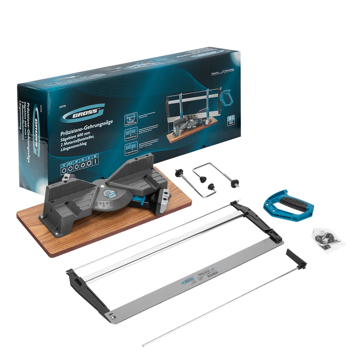 Стусло прецизионное, двухплоскостное, пила 600 мм, две прижимные струбцины, ограничительный упор Gross