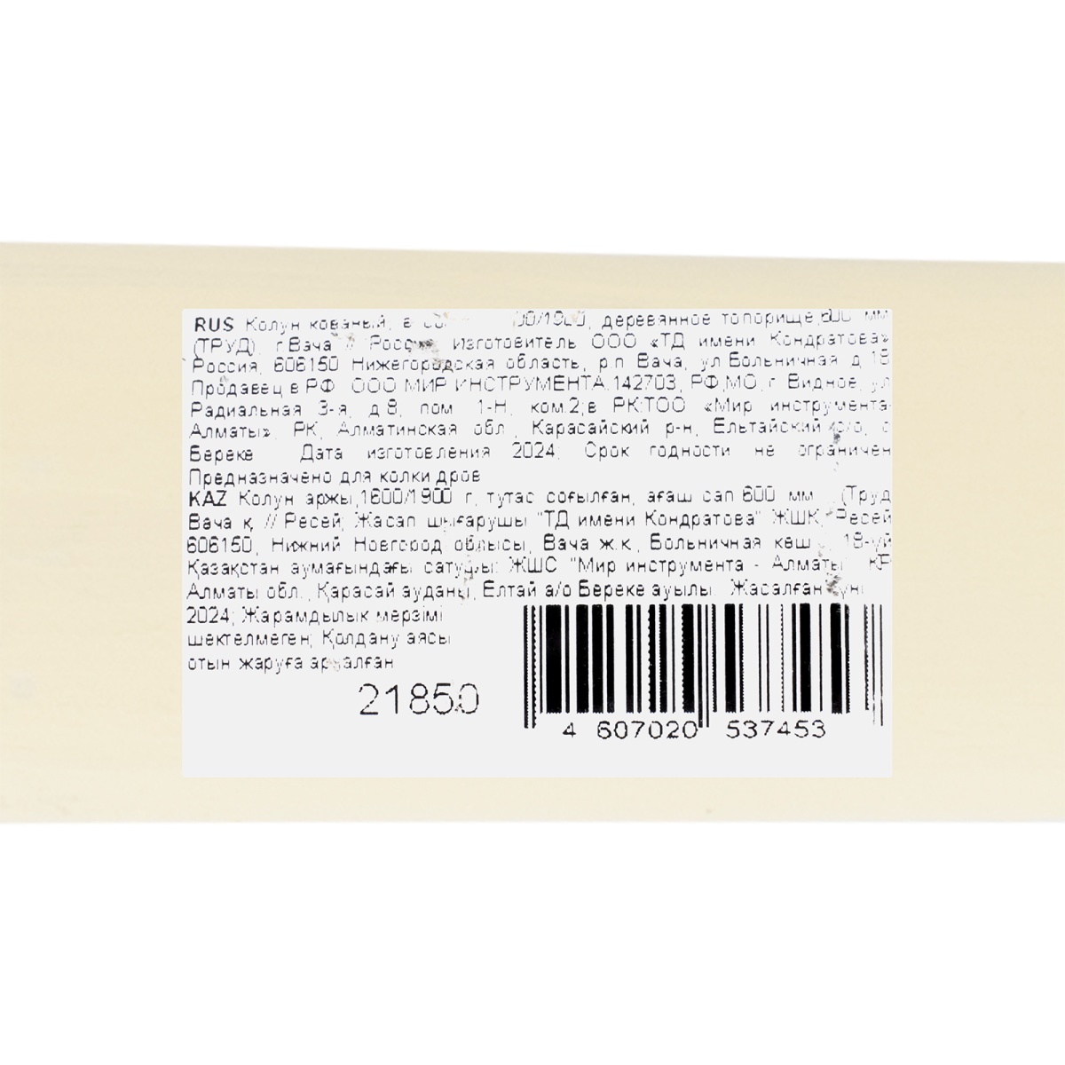 Наличие клапана для сброса давления Колун кованый, в сборе, 1700/2100 г, деревянное топорище, 600 мм